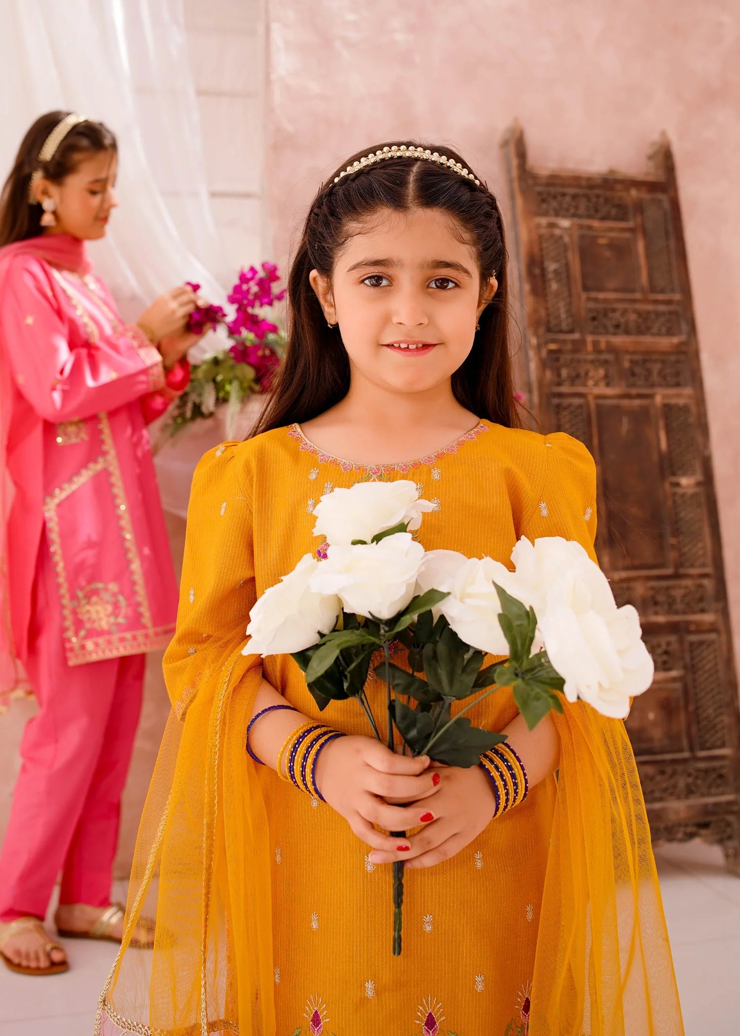 Top: Mustard cotton lawn embroidered short sleeves shirt
