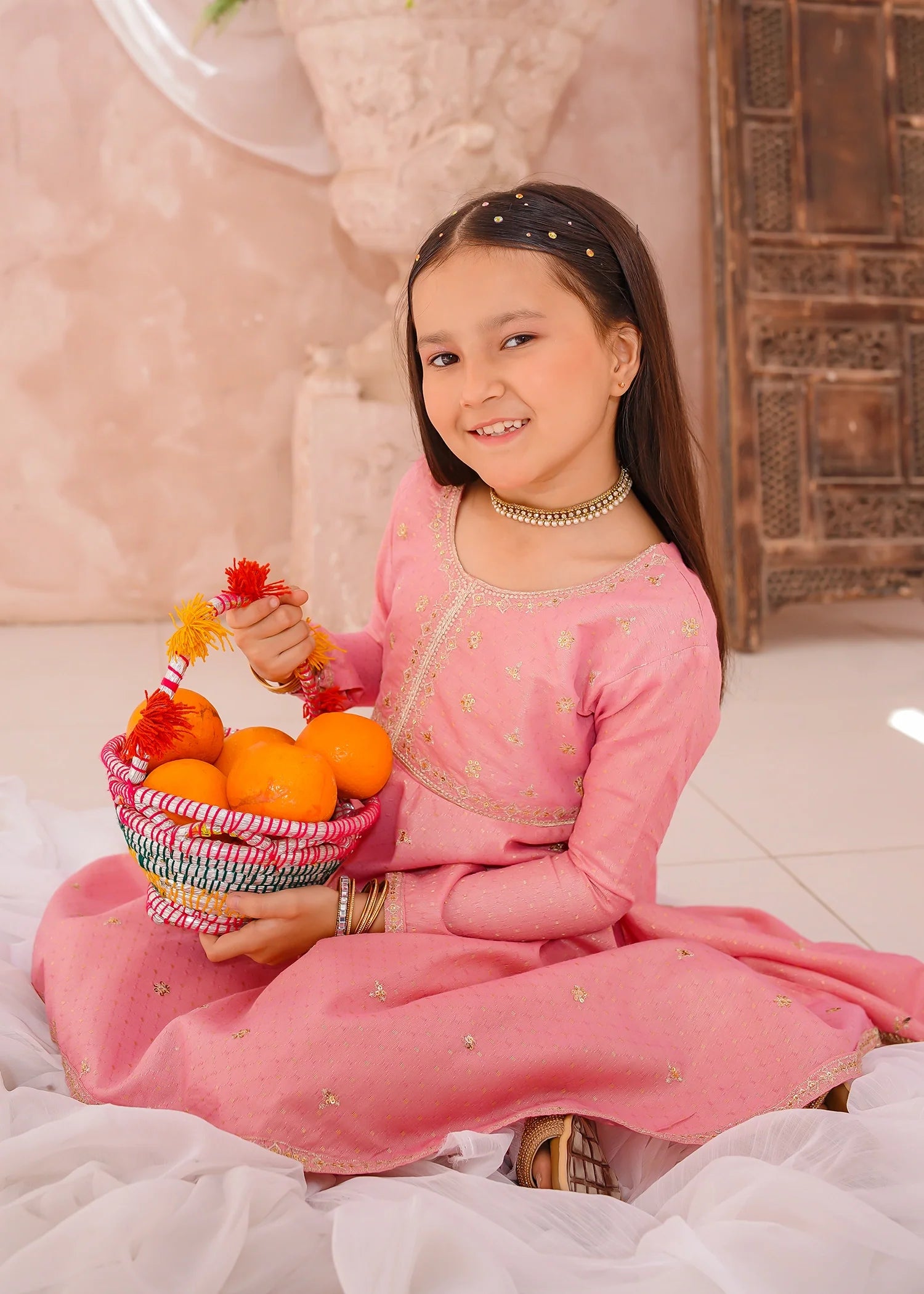 Dupatta: Pink net dupatta