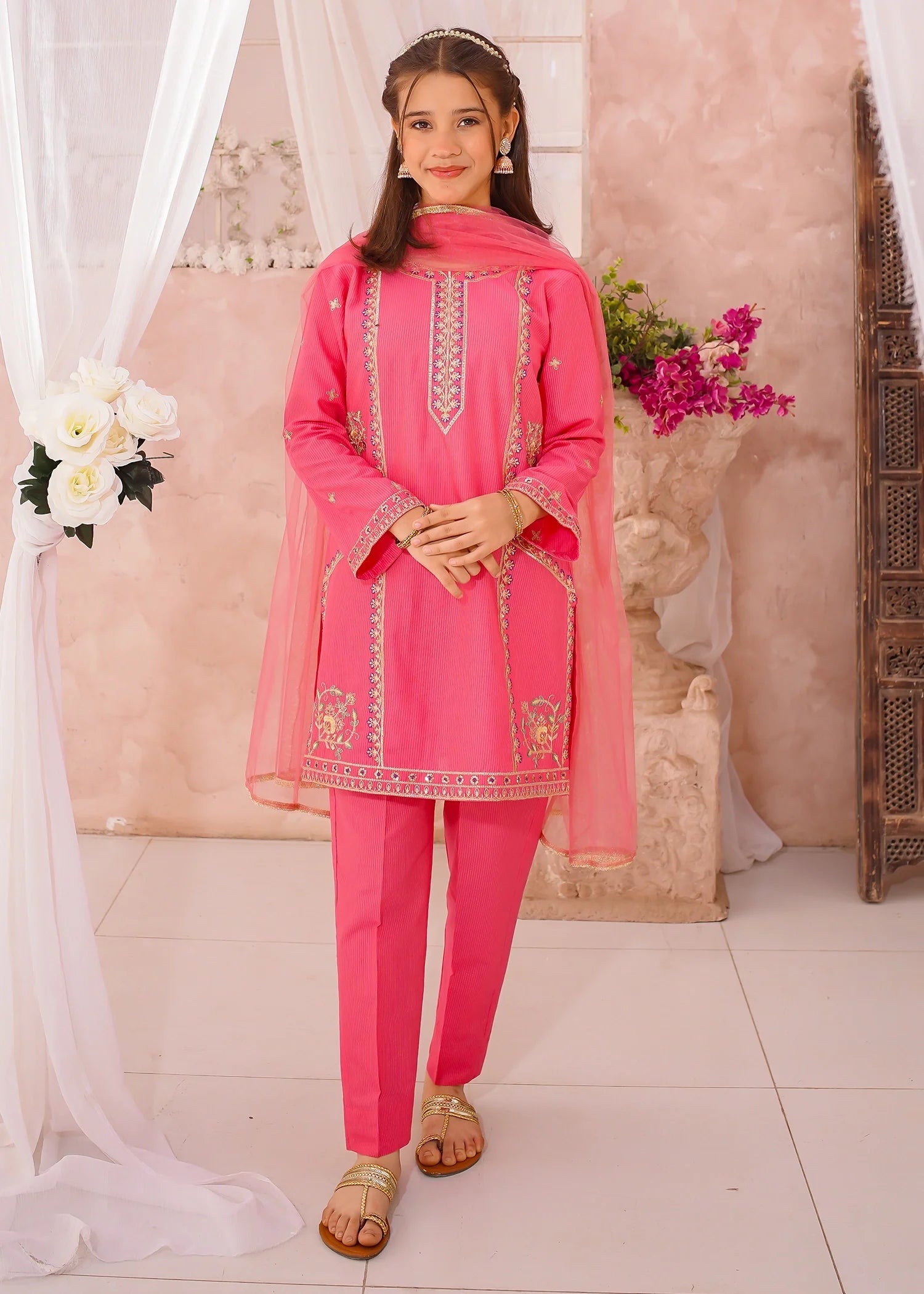 Dupatta: Pink net dupatta