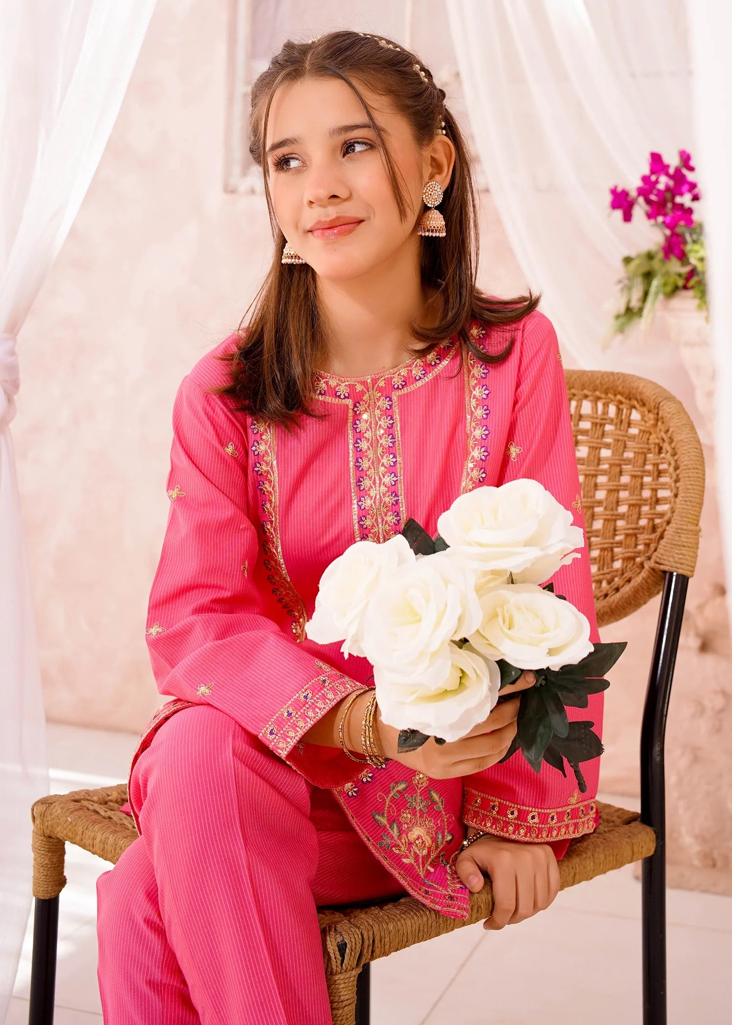 Bottom: Pink cotton lawn plain straight trouser