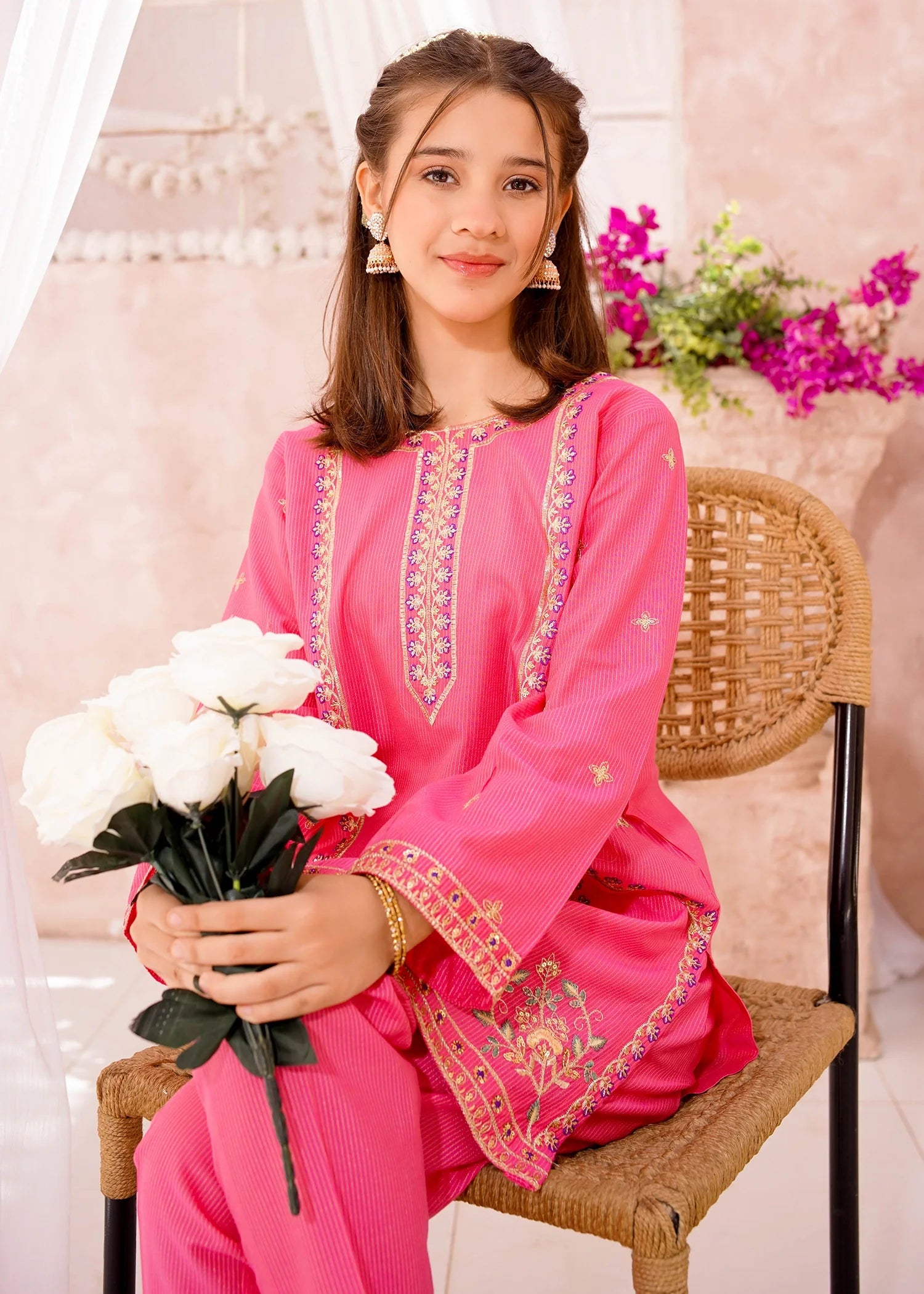 Top: Pink cotton lawn embroidered kurta shirt