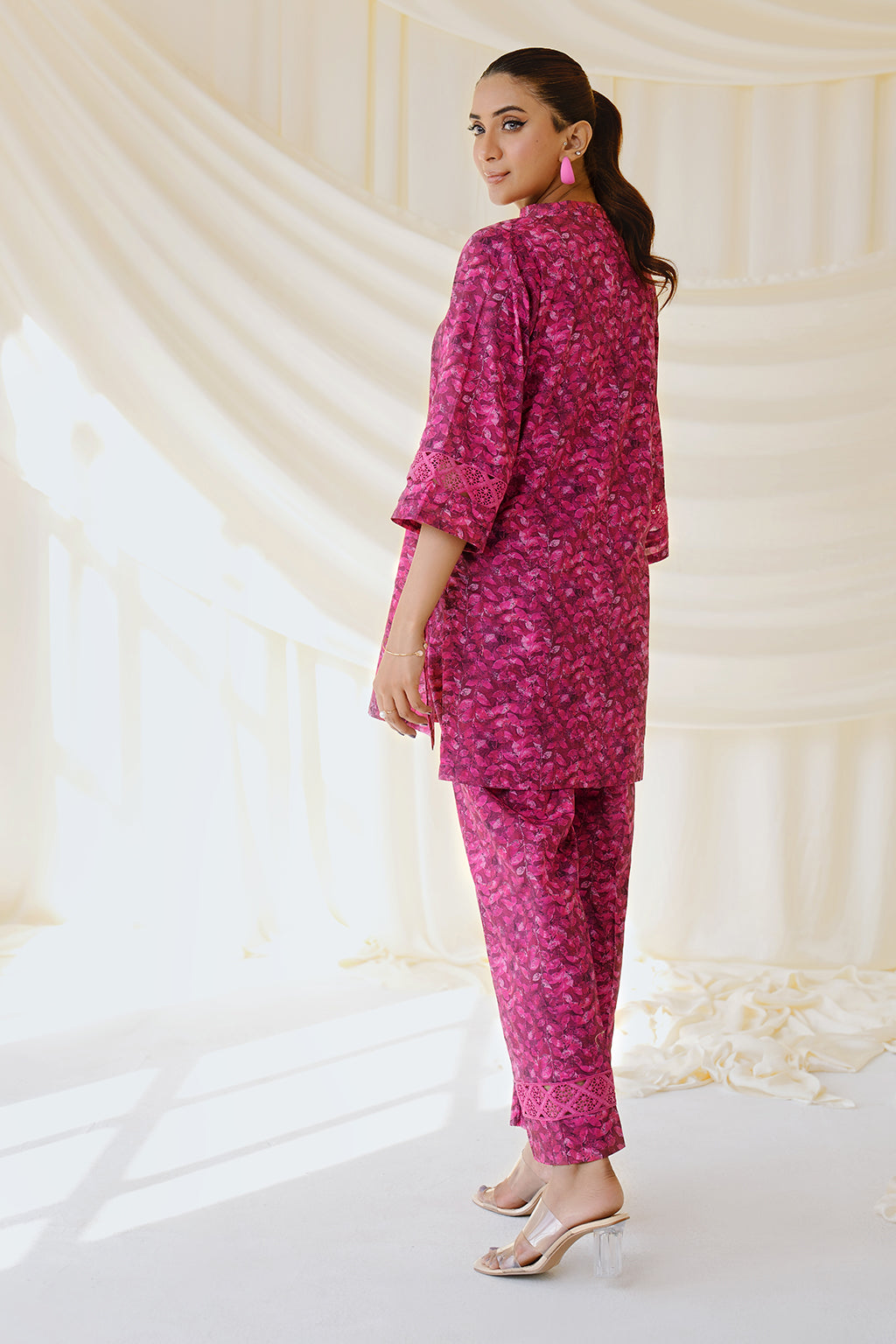2PC- Pret. All Over Digital Print. Medium Length loose fitted shirt. Straight Trousers
