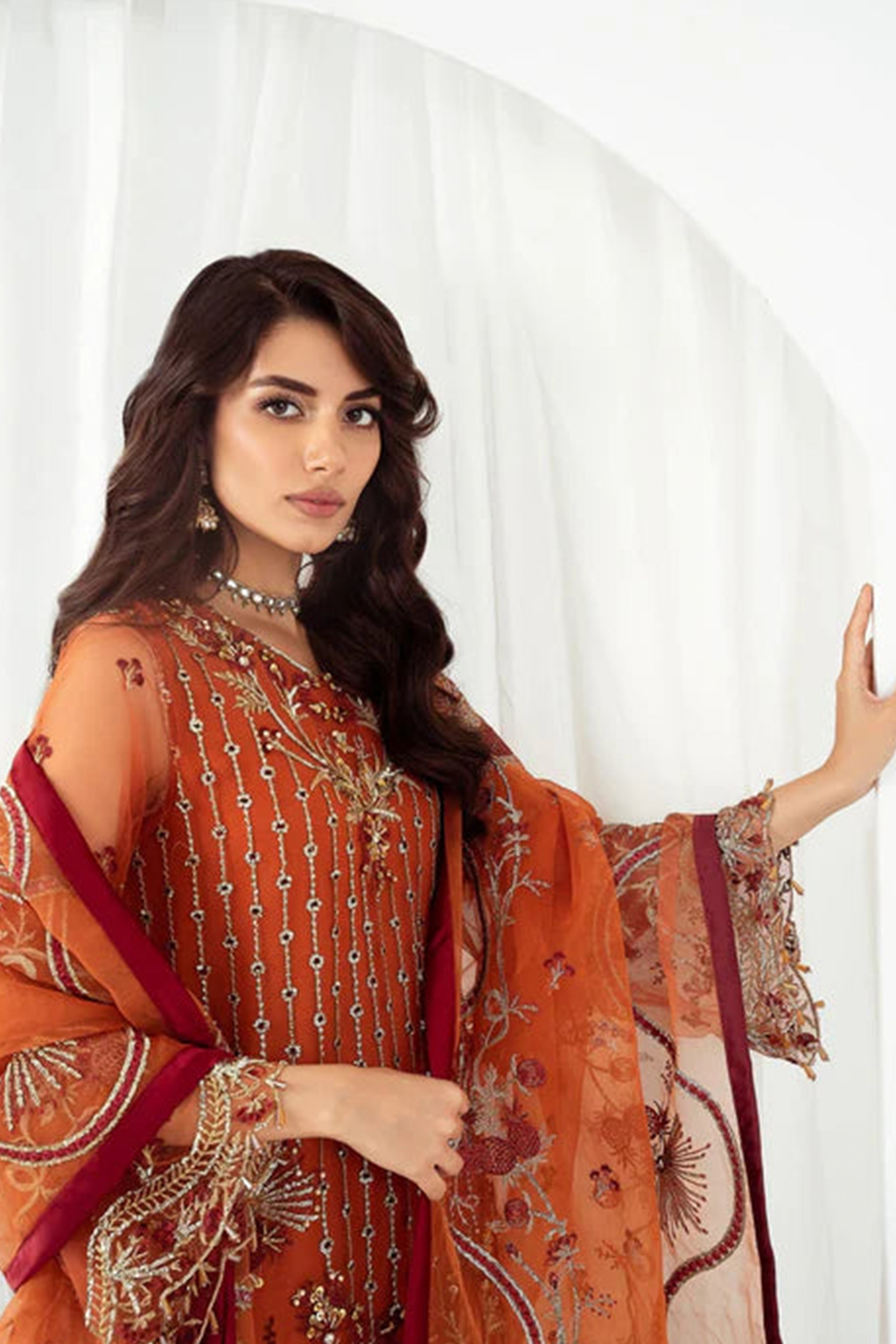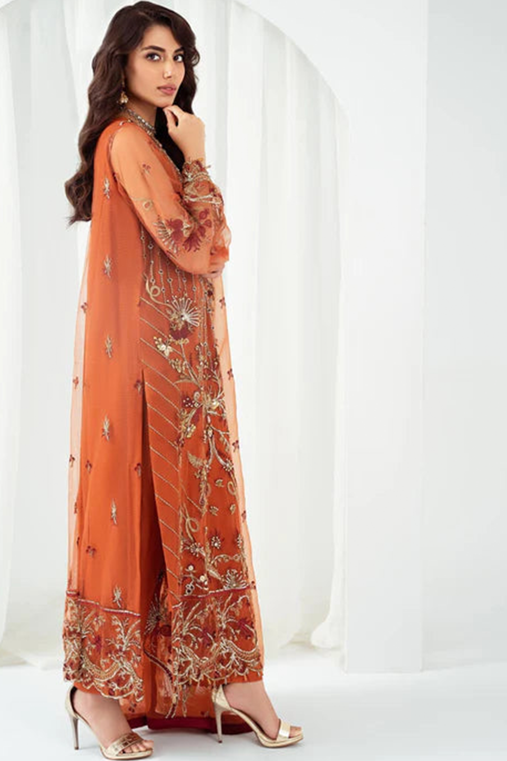 Additional Description:Hand Embellished Front On Net 0.66 Meter Embroidered Back Side Extensions On Net 1.32 Meter Embroidered Sleeves On Net 0.66 Meter Embroidered Front Boder On Net 1 meter Embroidered Back Boder On Net 1 meter Embroidered Dupatta On Organza 2.5 Meter Under Shirt Cotton Silk 2.25 Meter Trouser Raw Silk 2.25 Meter
