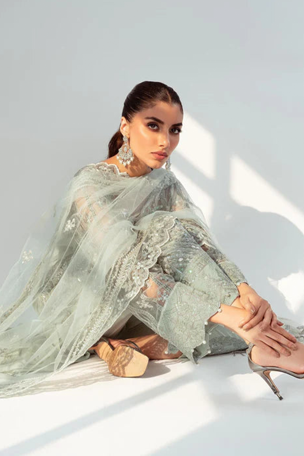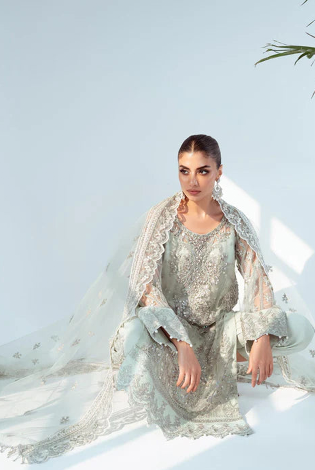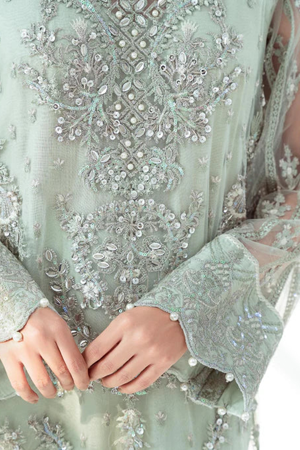 Additional Description:Hand Embellished Front On Net 0.66 Meter Embroidered Back Side Extensions On Net 1.32 Meter Embroidered Sleeves On Net 0.66 Meter Embroidered Sleeves Border On Raw Silk 1 meter Embroidered Front Boder On Raw Silk 1 meter Embroidered Back Boder On Raw Silk 1 meter Embroidered Dupatta On Net 2.5 Meter Embroidered Trouser Motif On Organza 1 pair Under Shirt Cotton Silk 2.25 Meter Trouser Raw Silk 2.25 Meter