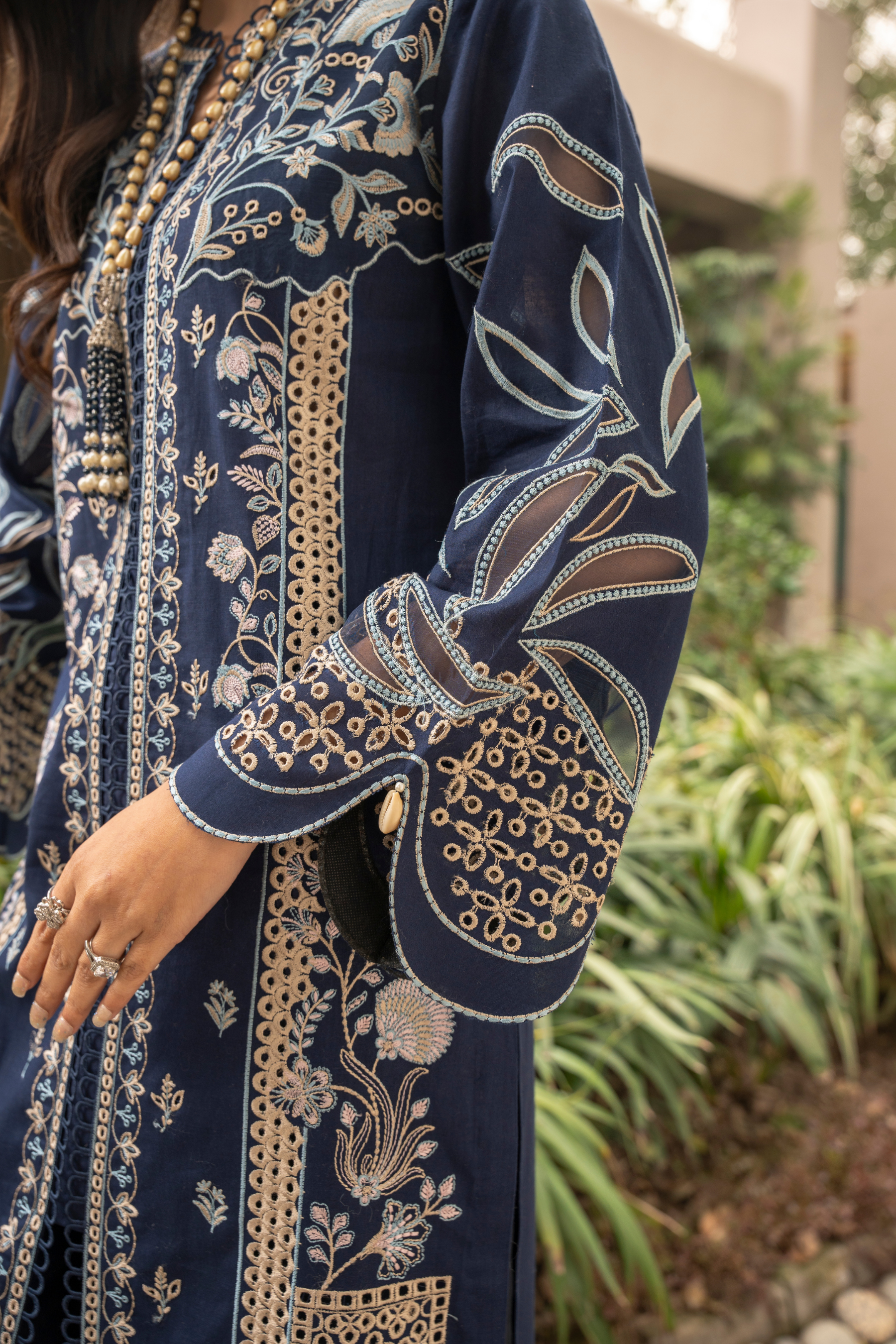 Embroidered lawn sleeves 0.67 yds.