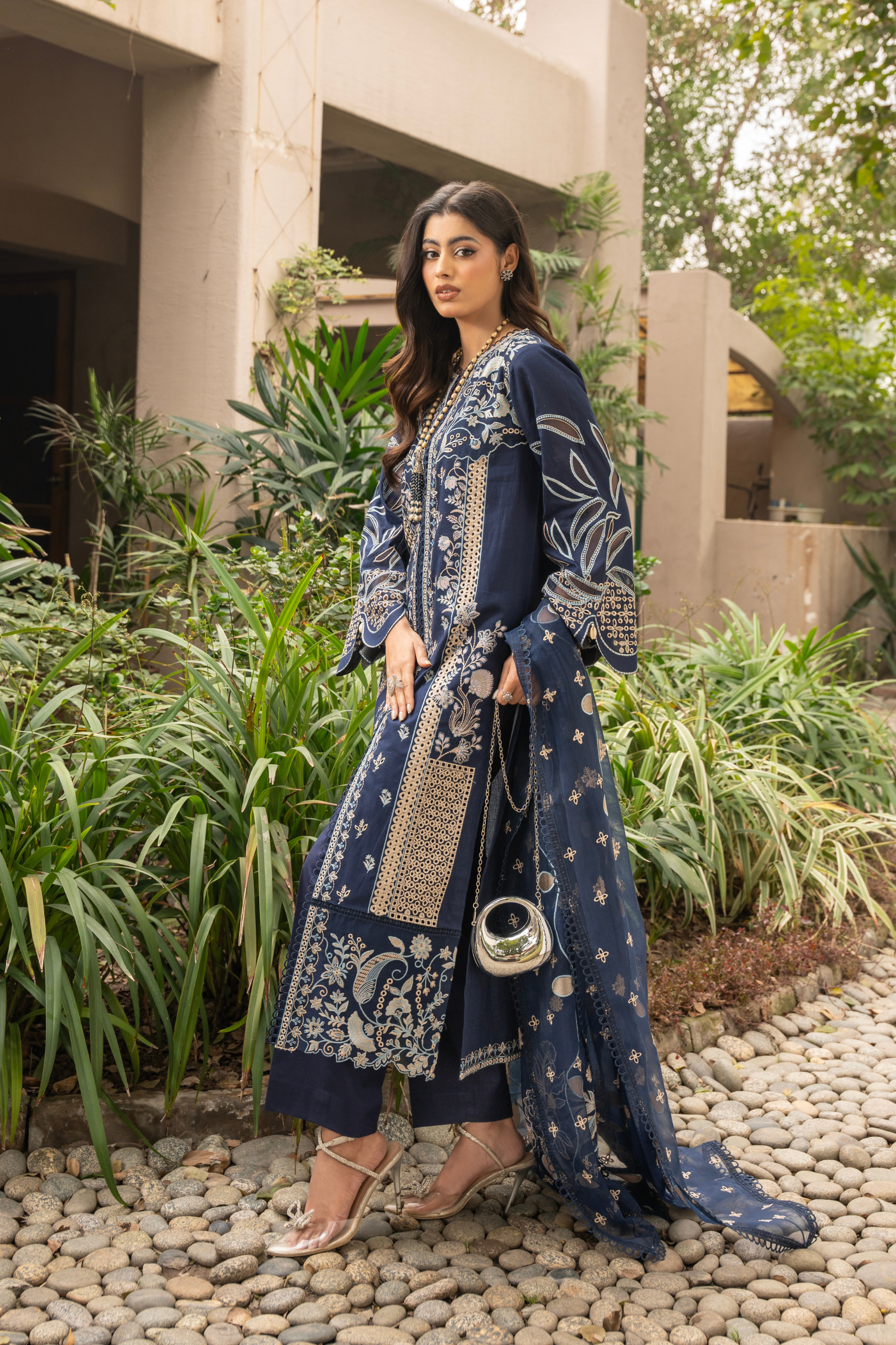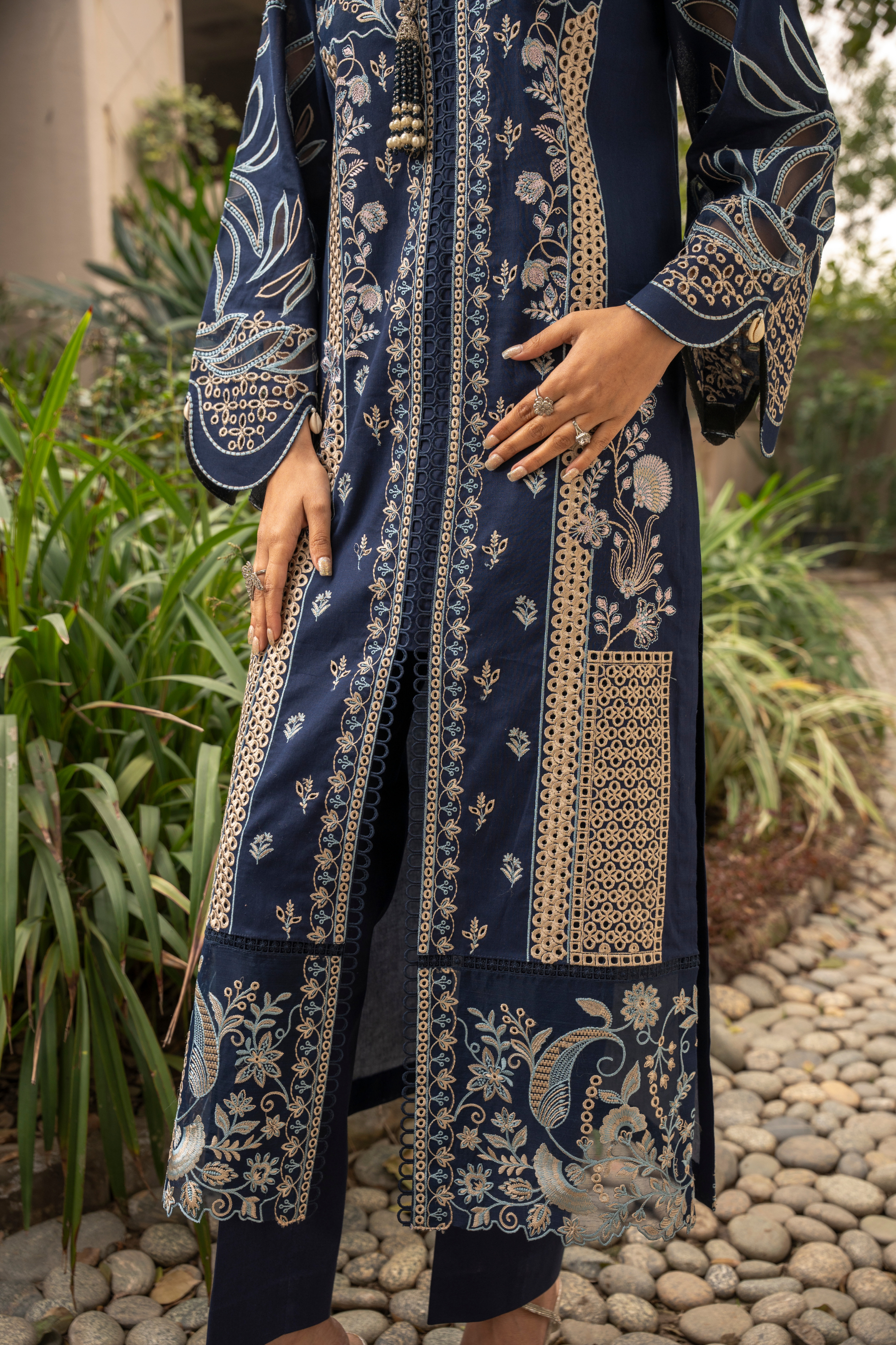 Embroidered lawn left/right panels for front 13-inch 2 pcs.