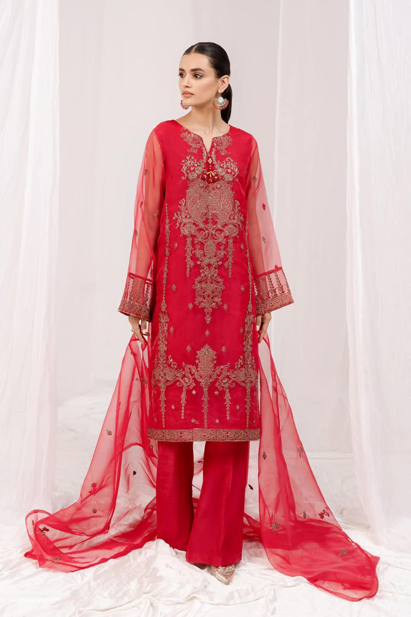 Mersin by Esra Stitched 2 Piece Festive Organza Collection'2022-ME-08-Red
