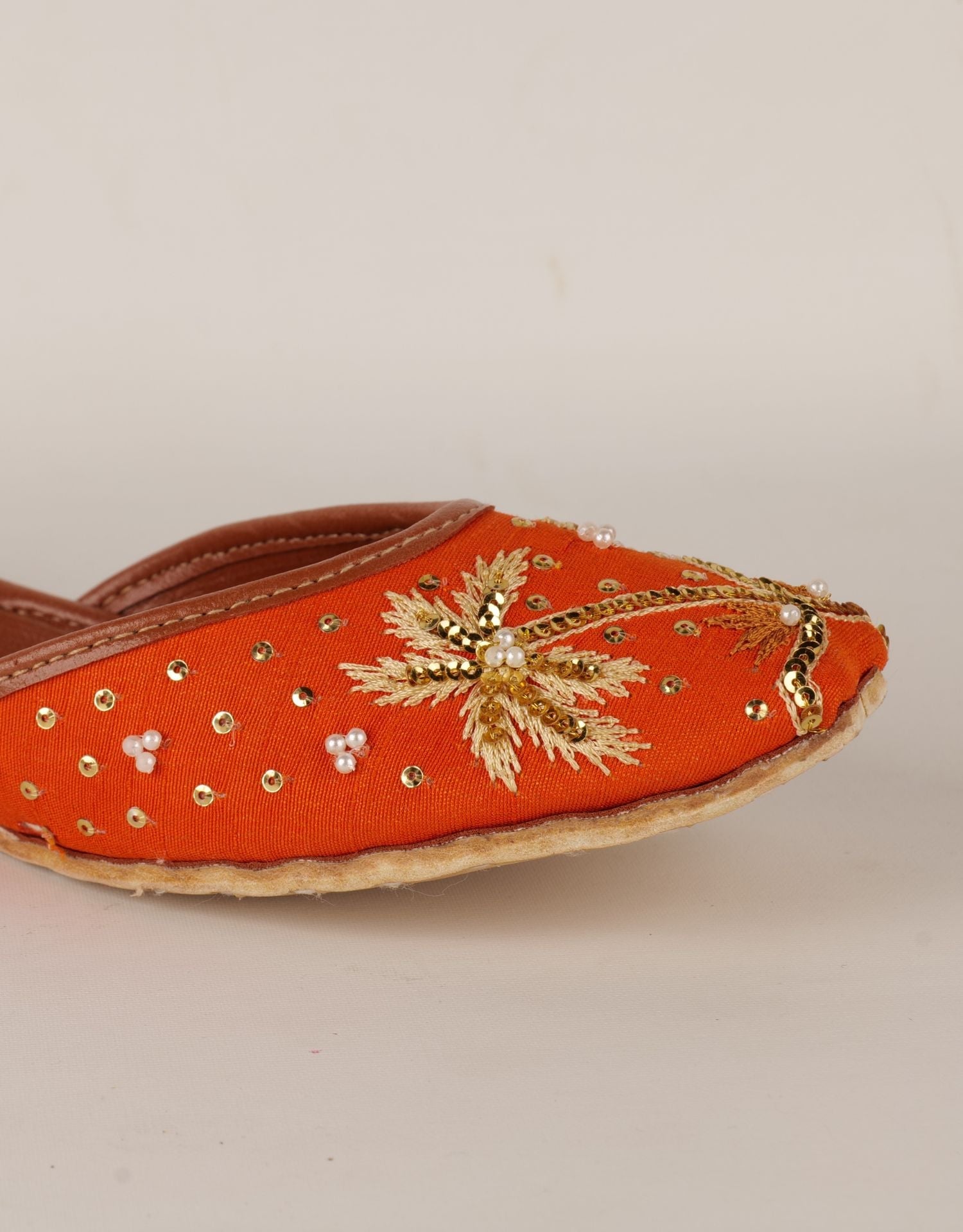 Inspired by the nature Stand out with this vibrant orange Khussa decorated with unique