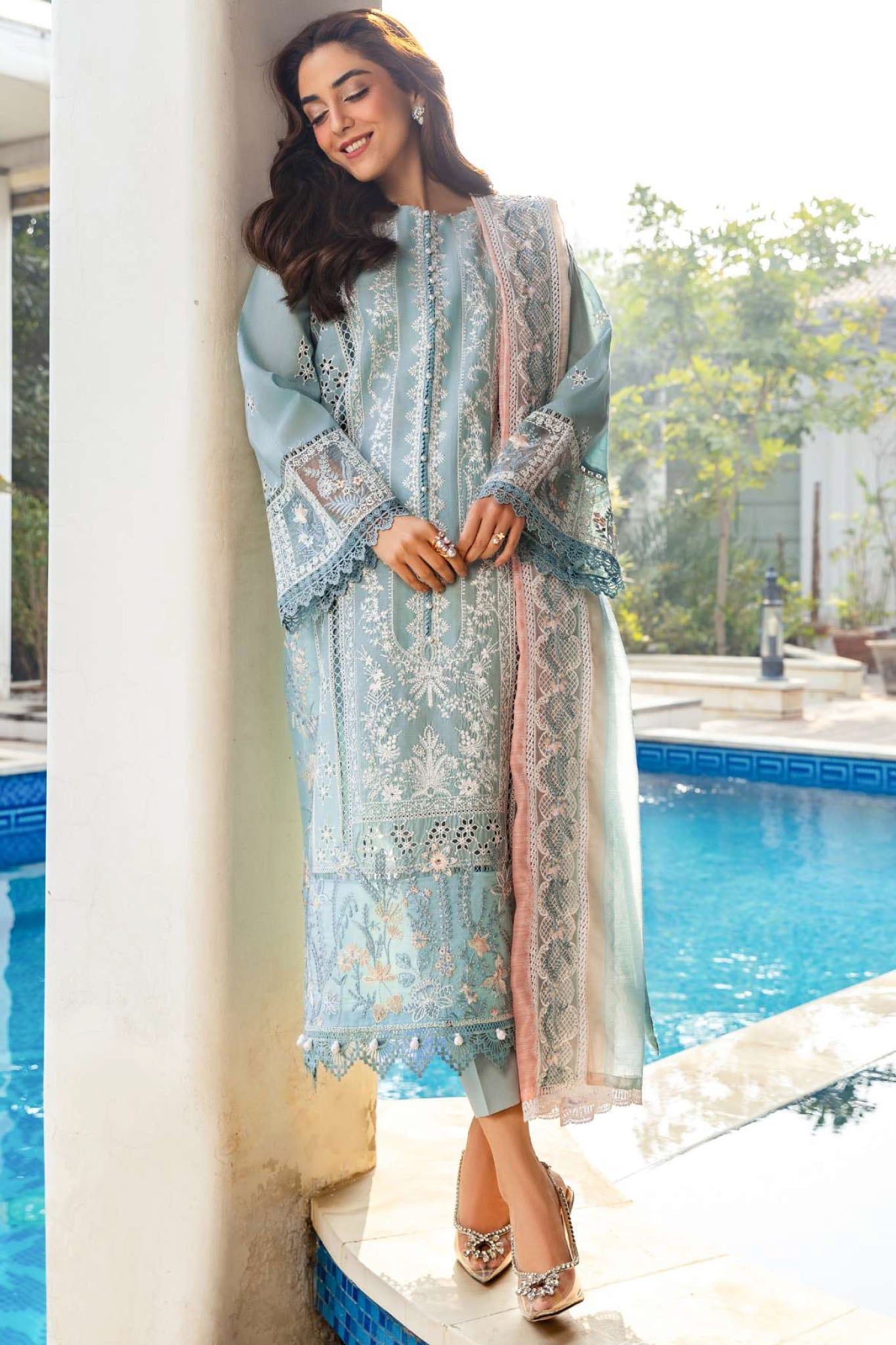 Schiffli Embroidered Lawn Front 1.15 M Dyed Lawn Back 1.15 M Neckline Embroidered Patch For Back 1 Pc Schiffli Embroidered...