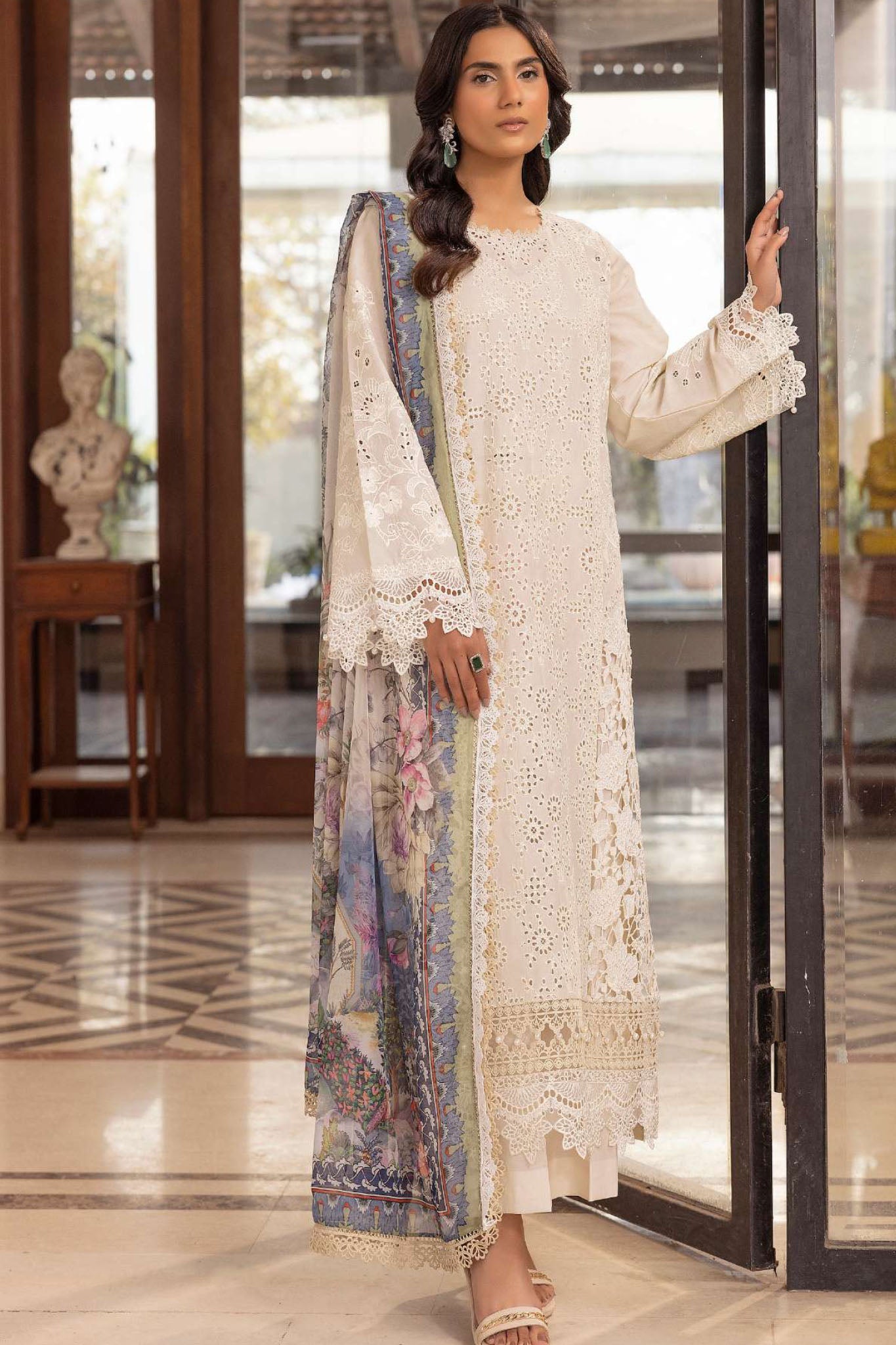 Schiffli Embroidered Lawn Front 1.15 M Dyed Lawn Back 1.15 M Schiffli Embroidered Patch For Front Daman 0.92 M Schiffli...