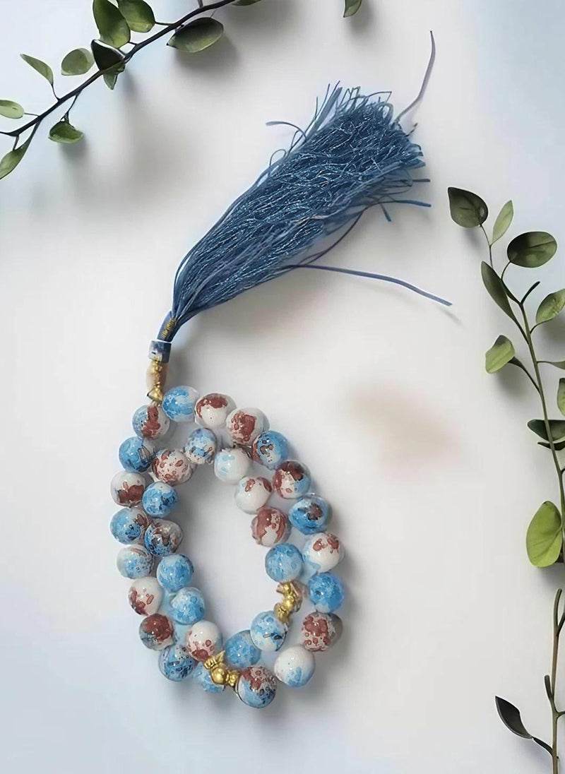 Elevate your spiritual practice with this beautifully handcrafted Multi Marble Tasbeeh. Each bead is a unique blend of earthy browns, tranquil blues, and soft whites, mimicking the elegance of natural marble. Designed for both devotion and aesthetic appeal, this tasbeeh features: