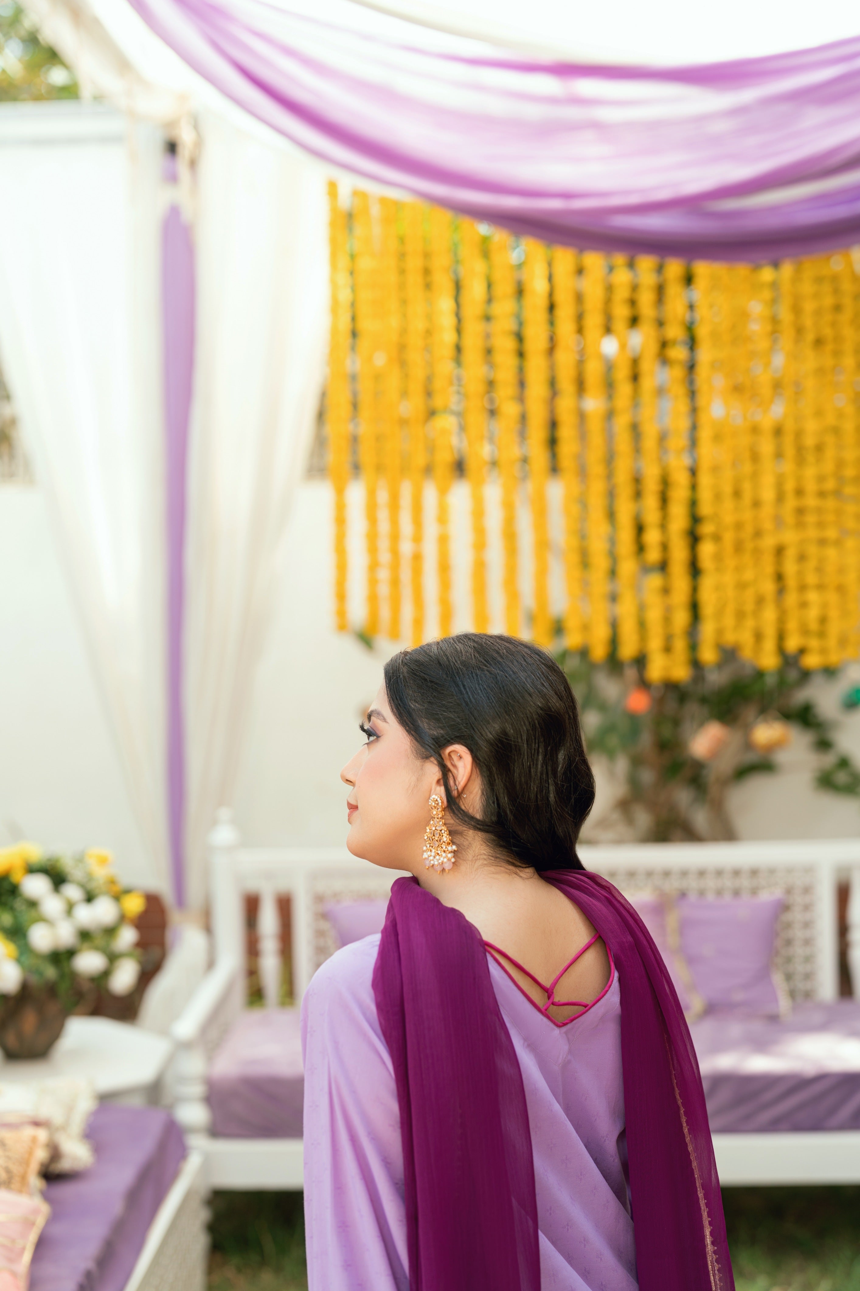 Dupatta Details: Chiffon contrasting purple chiffon dupatta with gota and fabric manipulation