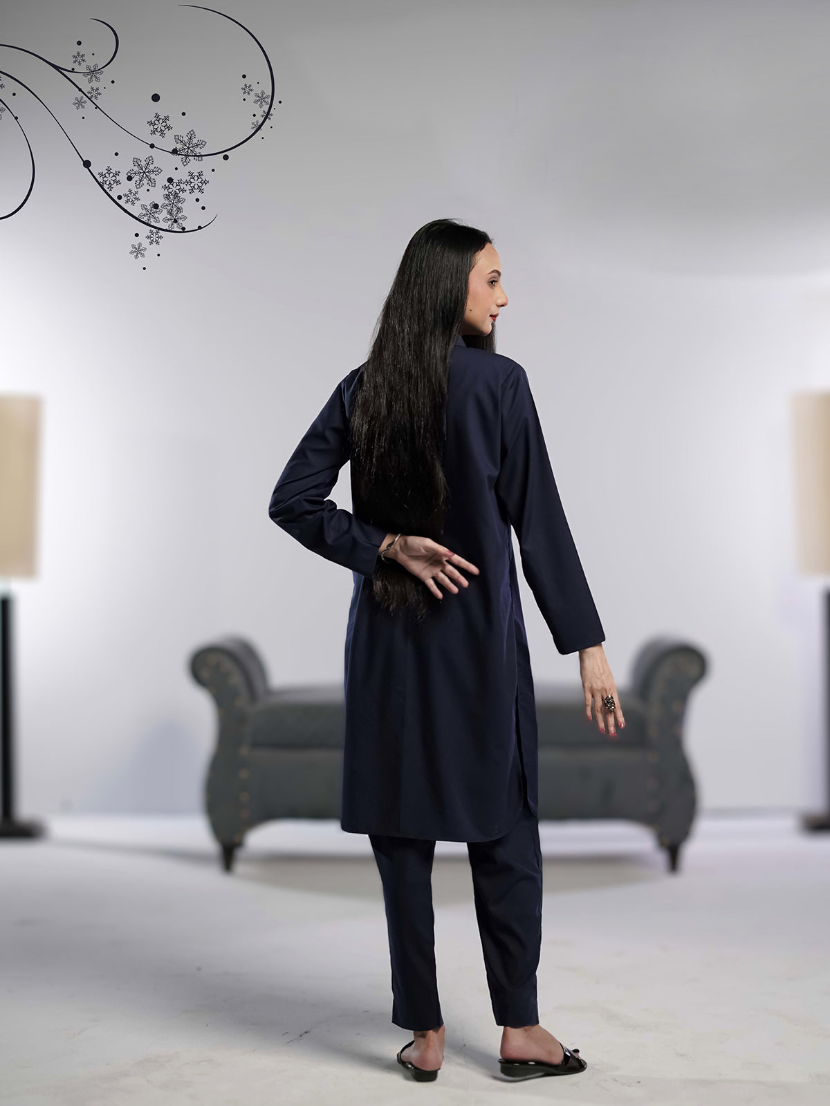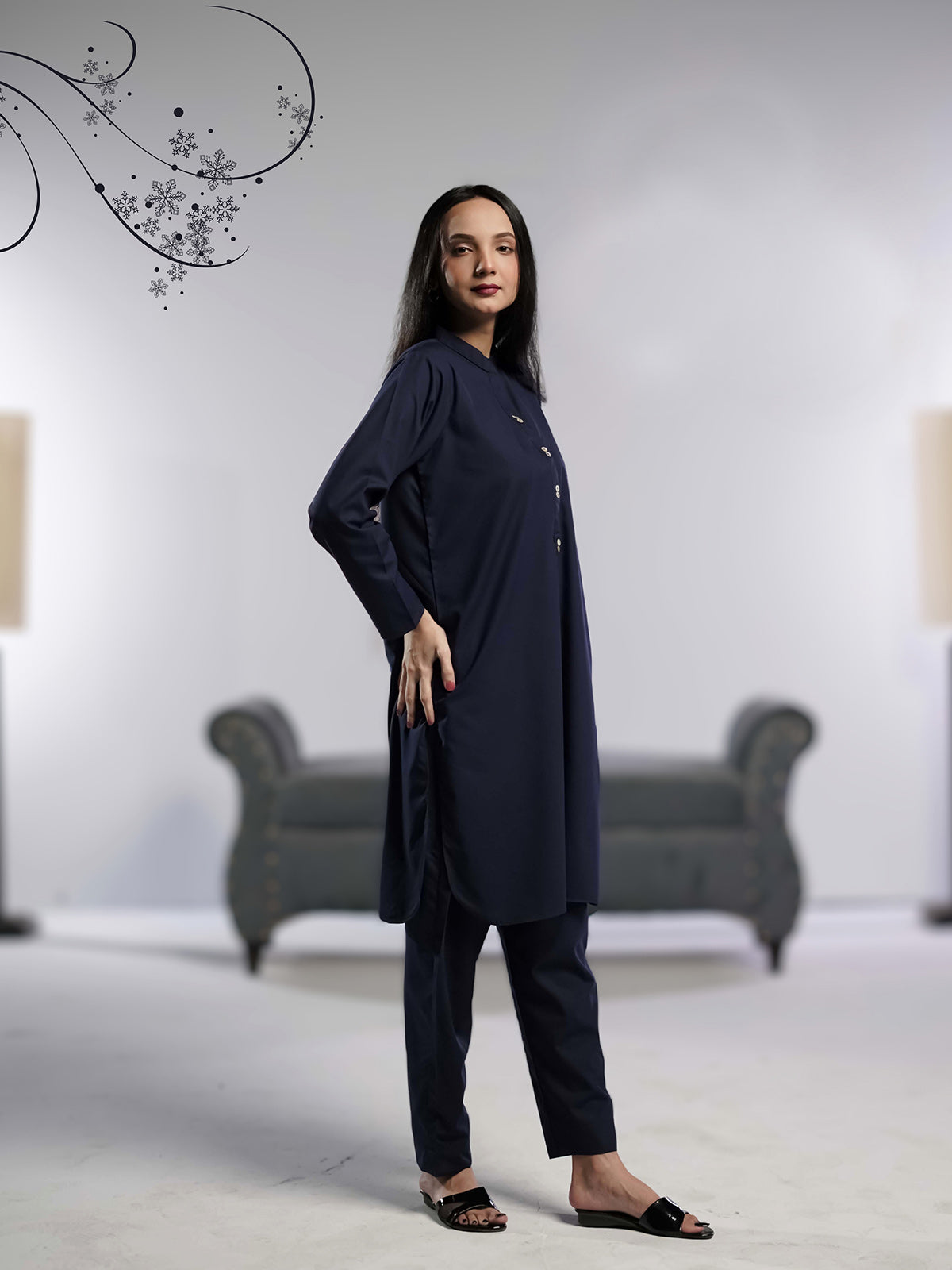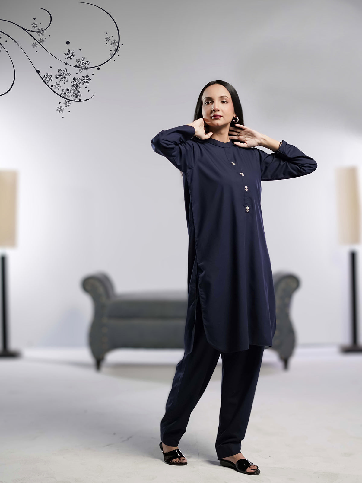 Elevate your style with our Navy luxe, where sophistication meets simplicity. Crafted from premium Viscos fabric, this elegant two-piece ensemble features a ban collar, buttons on the placket, and round sleeves and round daman, adding a touch of refined elegance.