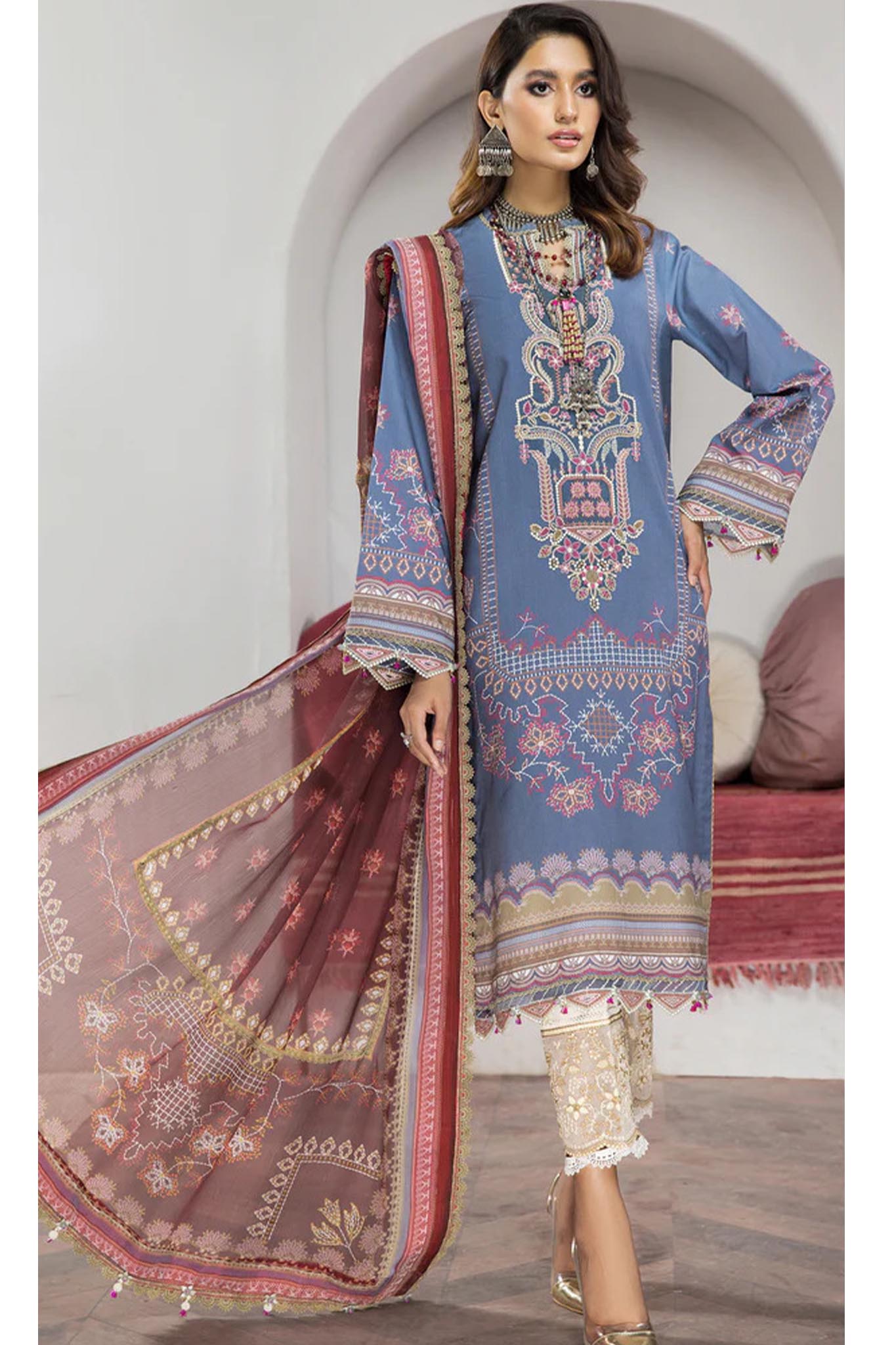 Digital Printed Chiffon Dupatta Digital Printed Cambric Shirt Dyed Cambric Trouser Embroidered Neckline Embroidered Sleeve Border Embroidered Hem Border Embroidered...