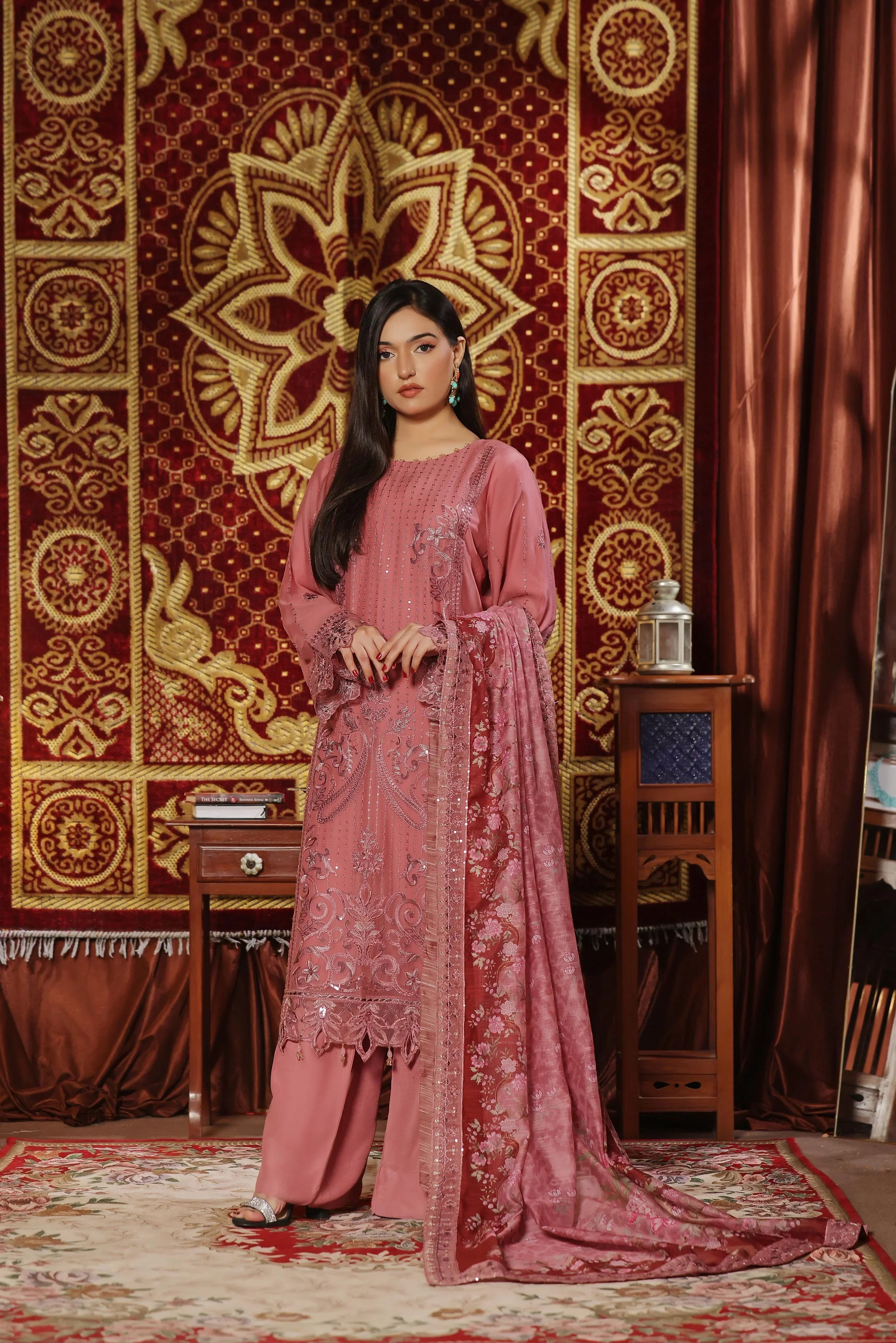 Dupatta: Luxury embroidered digital print dupatta for a sophisticated touch