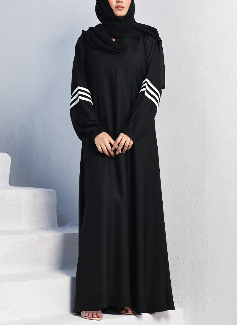 Strip Style Sophistication: The design of this Abaya, featuring a strip style, adds an element of sophistication, creating a perfect harmony between traditional modesty and contemporary fashion.