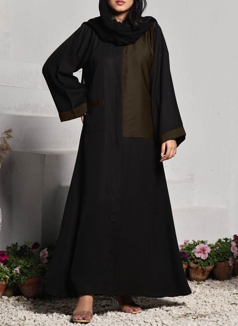 Black and Brown Palette: The combination of Black and Brown exudes richness and sophistication, making this Abaya a versatile choice suitable for various occasions, from casual outings to special events.