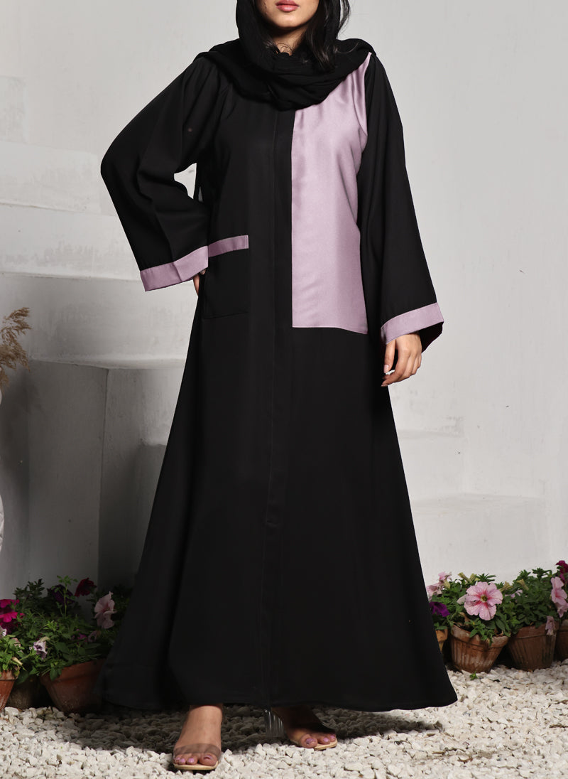 Black and Maroon Palette: The combination of Black, and Light Pink exudes richness and sophistication, making this Abaya a versatile choice suitable for various occasions, from casual outings to special events.