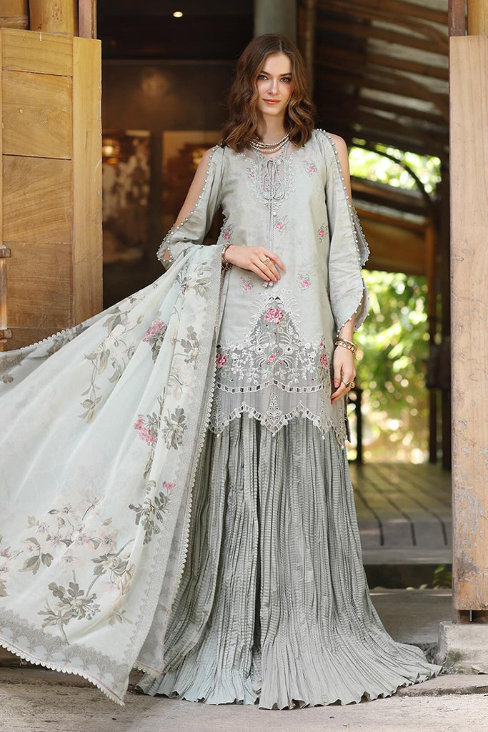 Cross stich embroidered digital printed lawn front
