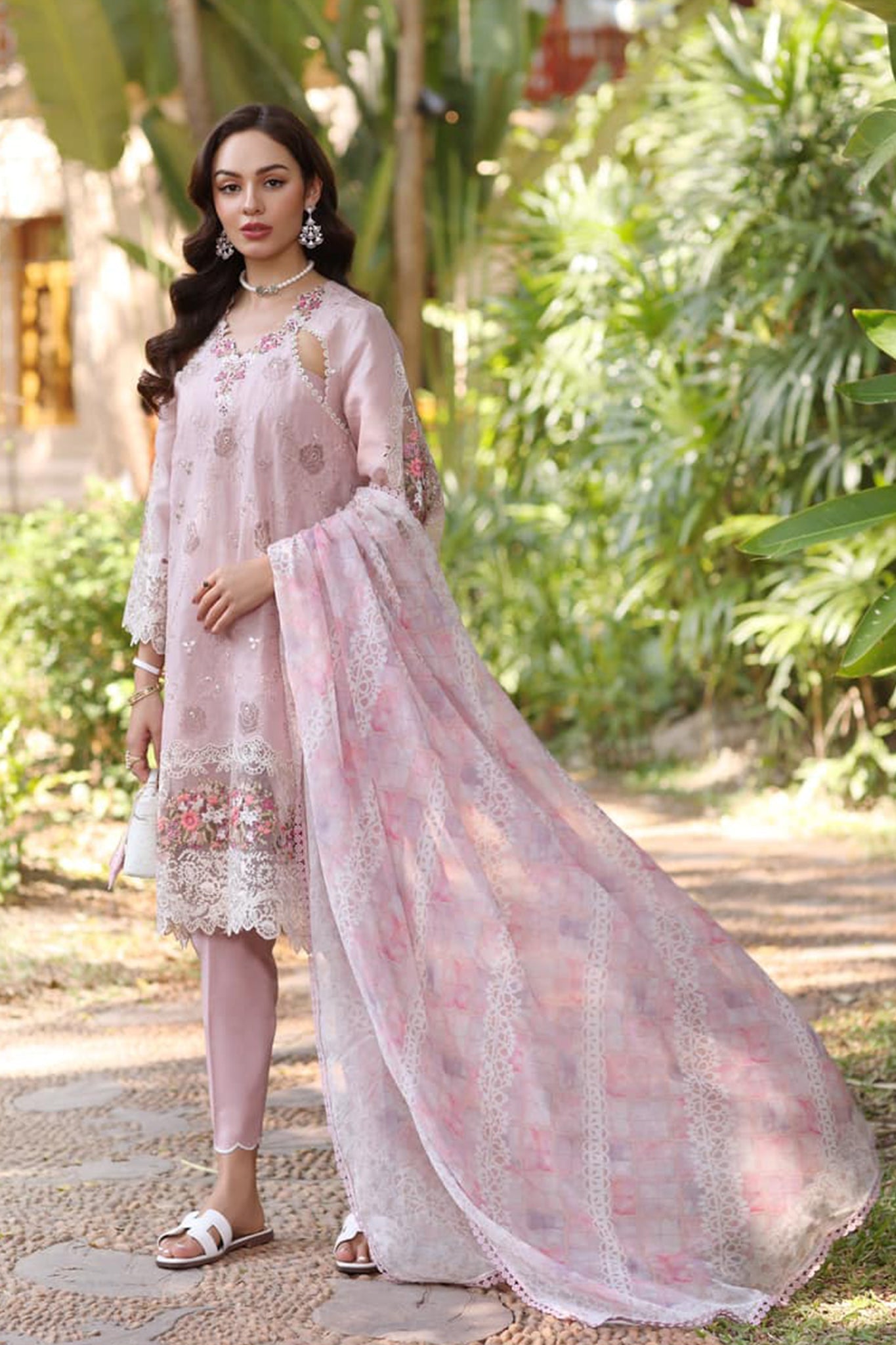 Panni & laser embroidered lawn front Schiffli embroidered lawn back Schiffli embroidered lawn sleeves Dyed cambric trouser Digital printed chiffon...