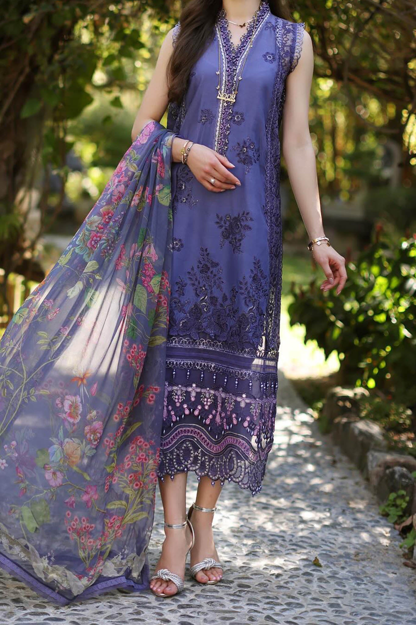 Laser & sequin embroidered lawn front & embroidered lawn panel(extra) Embroidered lawn back Embroidered lawn sleeves Dyed cambric trouser Digital...