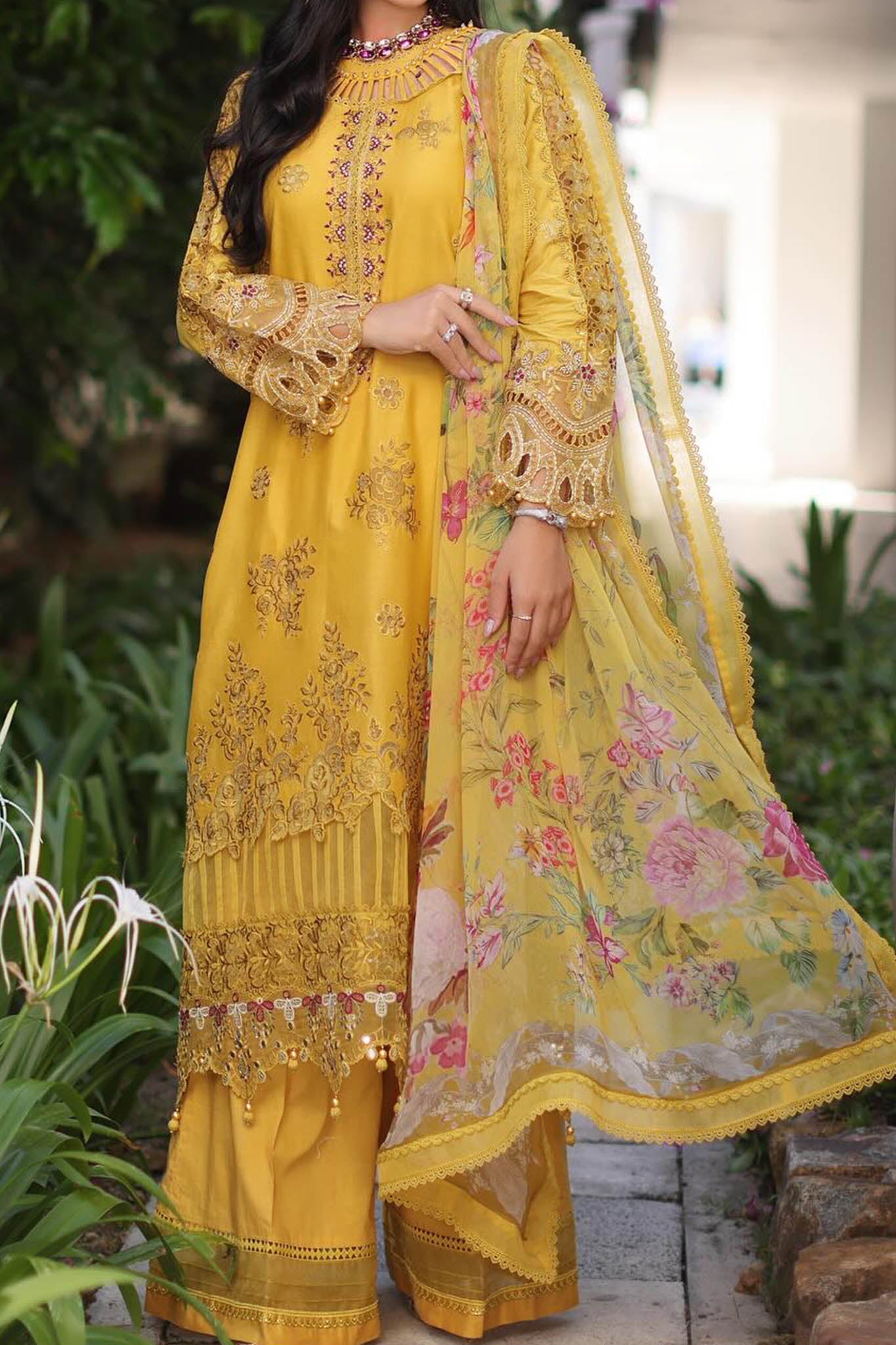 Laser & sequin embroidered lawn front & embroidered lawn panel(extra) Embroidered lawn back Embroidered lawn sleeves Dyed cambric trouser Digital...