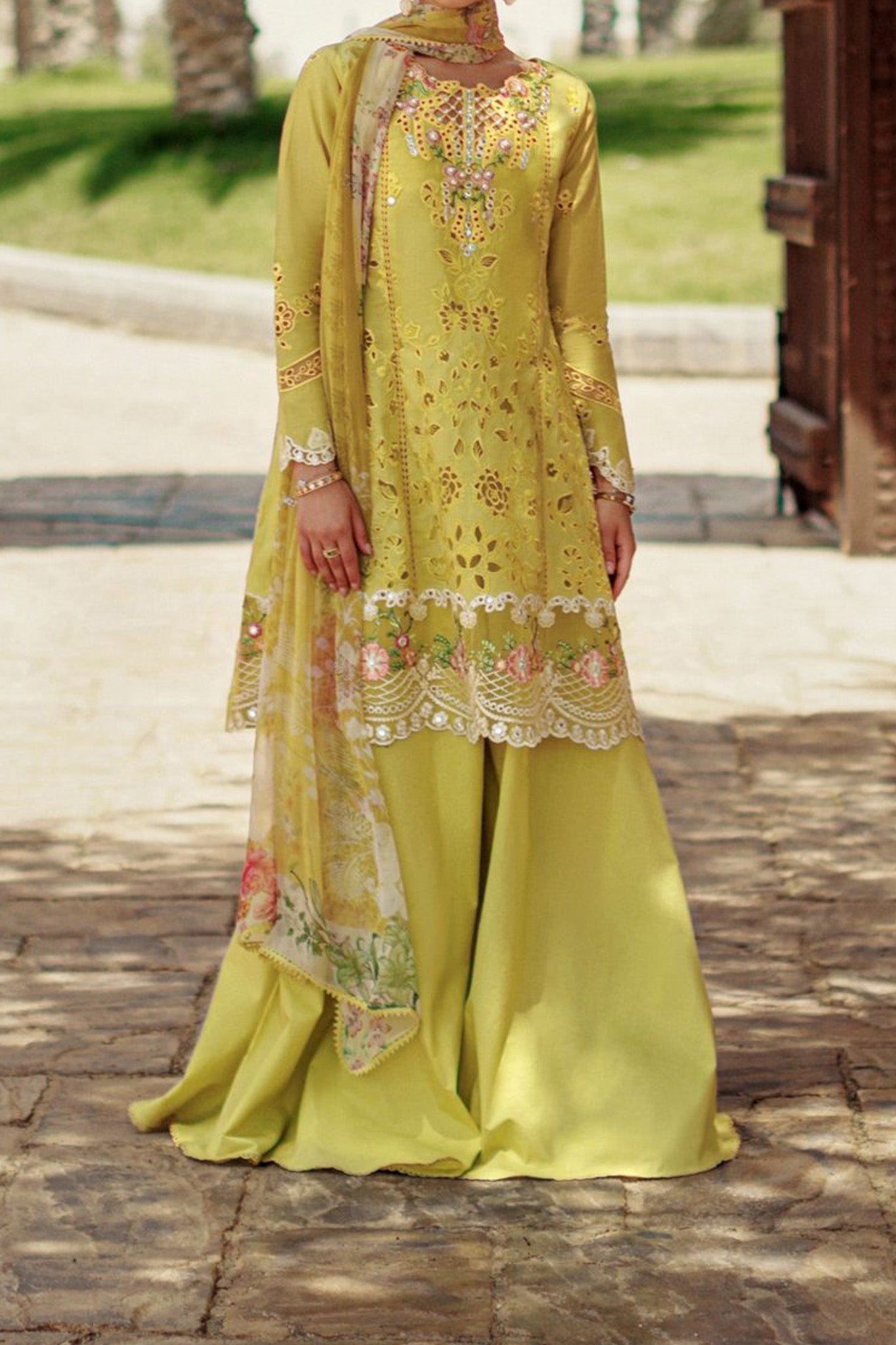 Panni laser embroidered lawn front center panel & panni laser embroidered side panels Embroidered lawn back Shiflli embroidered lawn sleeves...