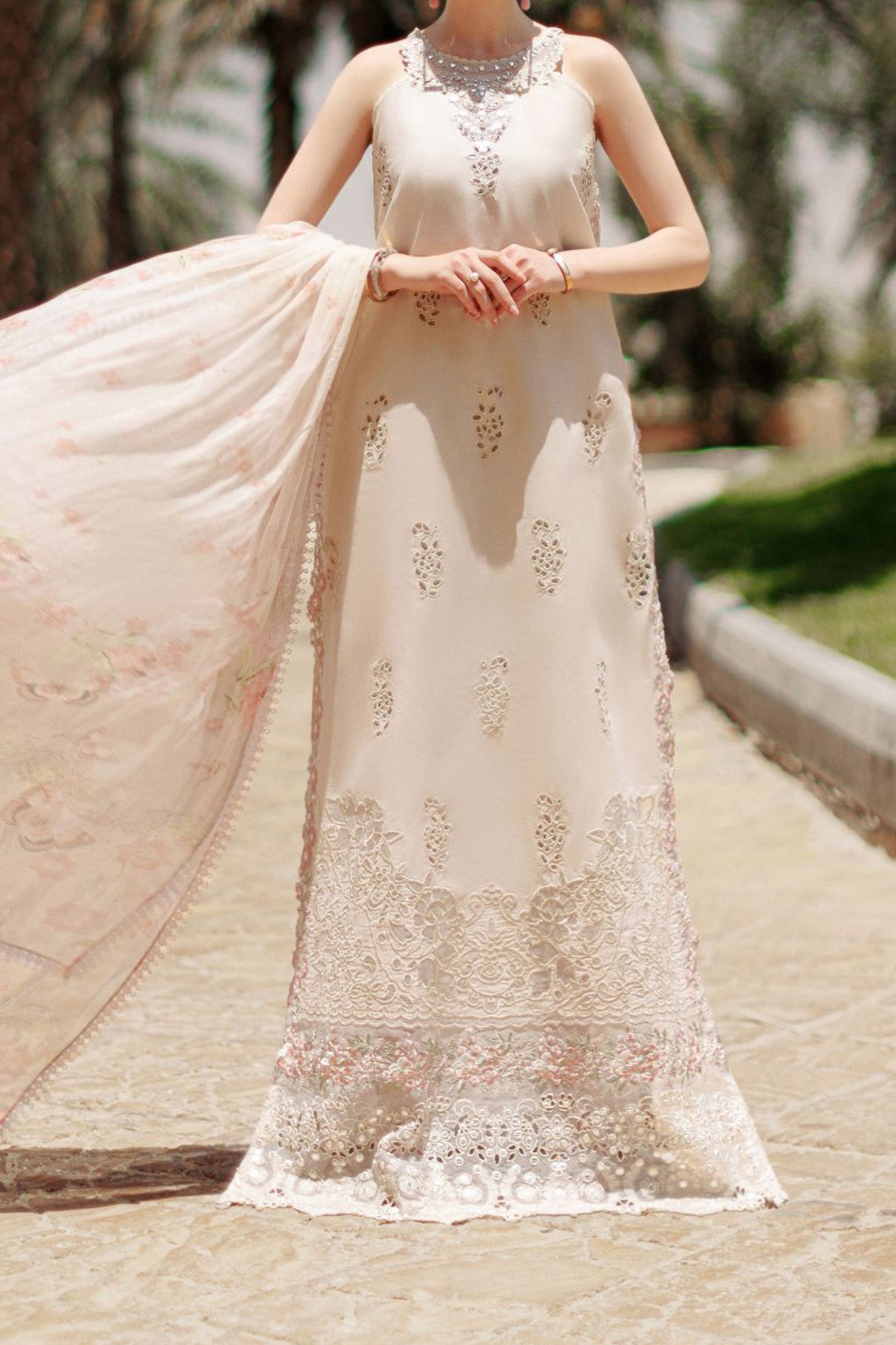 Noor Saadia Asad Unstitched 3 Piece Eid Handwork Laserkari Emb Lawn Collection'2024-D-02