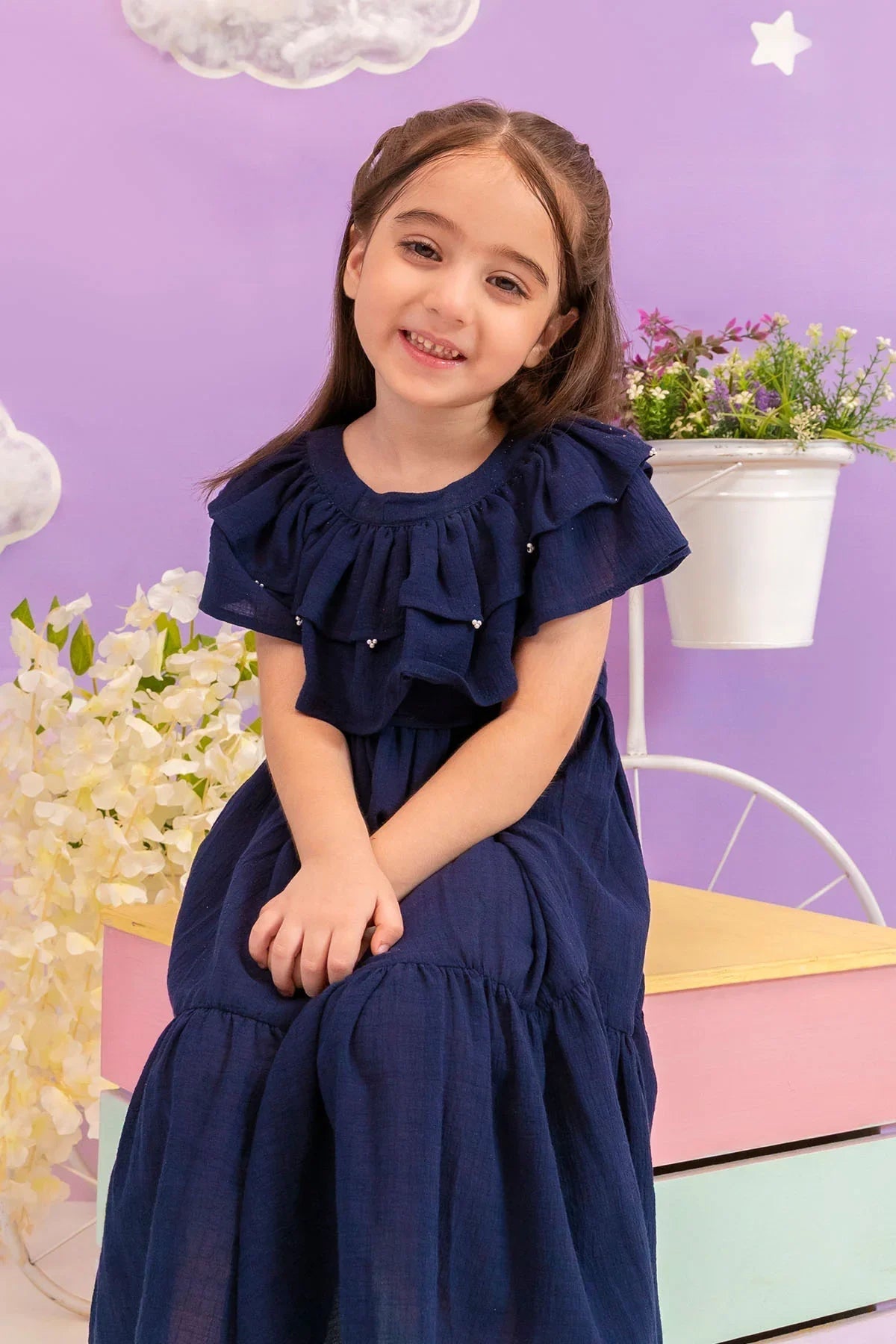 Top: Navy Blue Chambray Cotton DressÂ