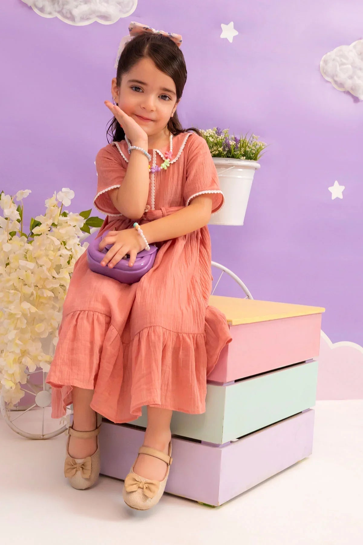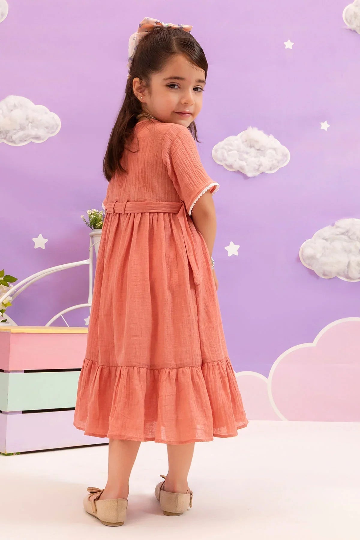Top: Coral Pink Chambray Cotton DressÂ
