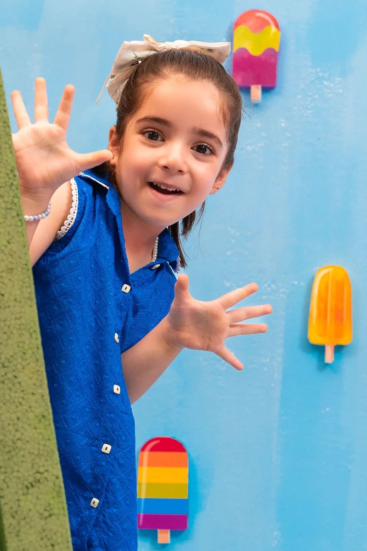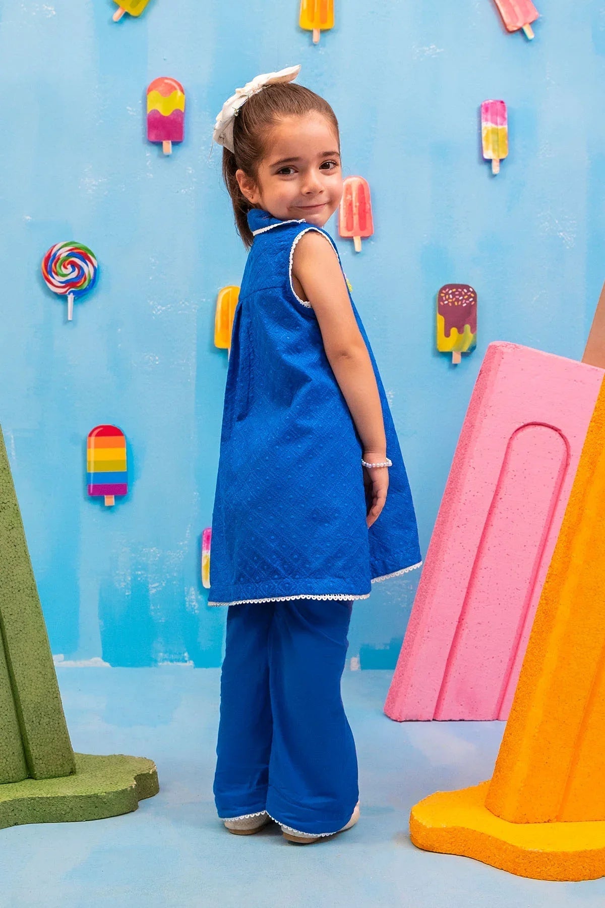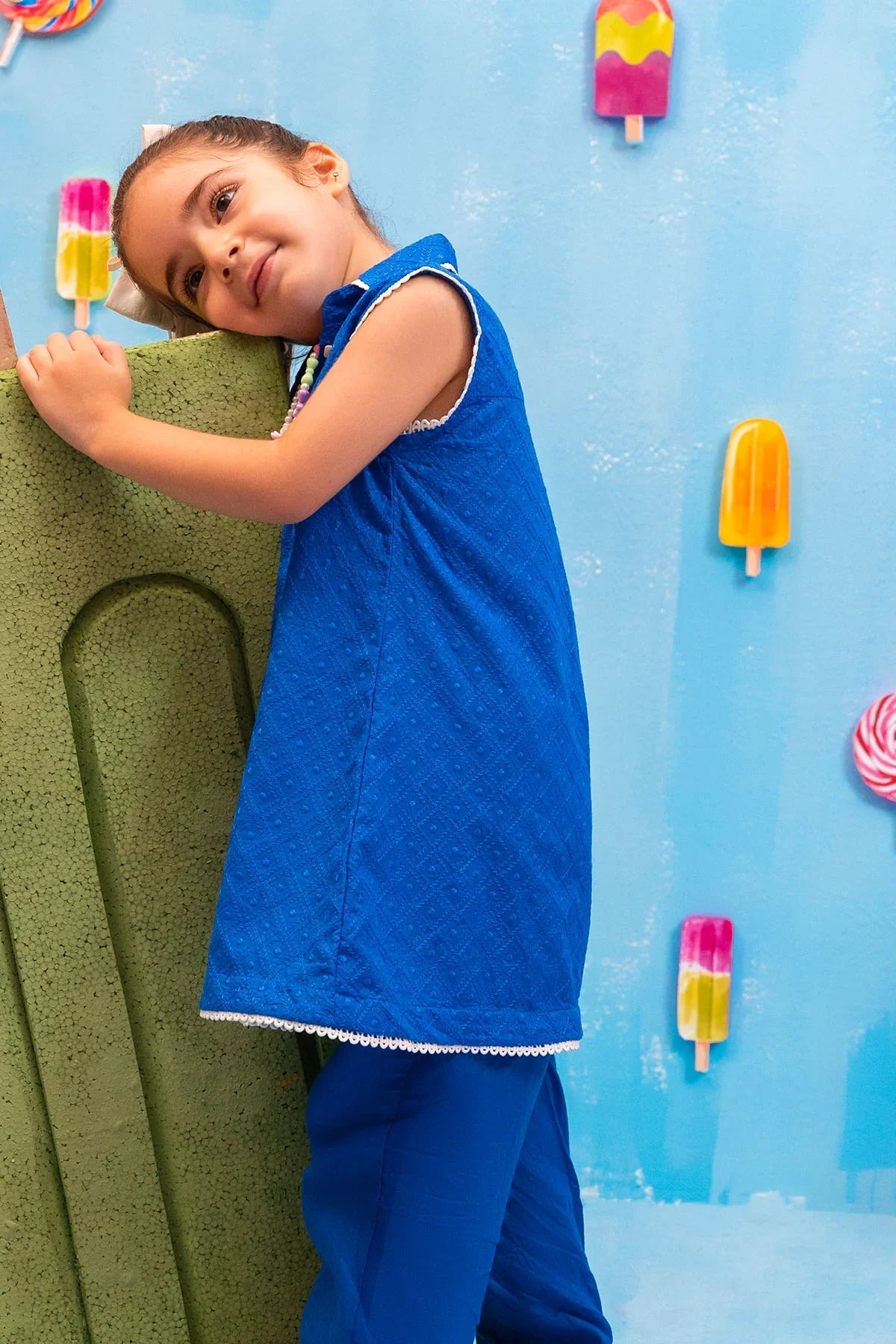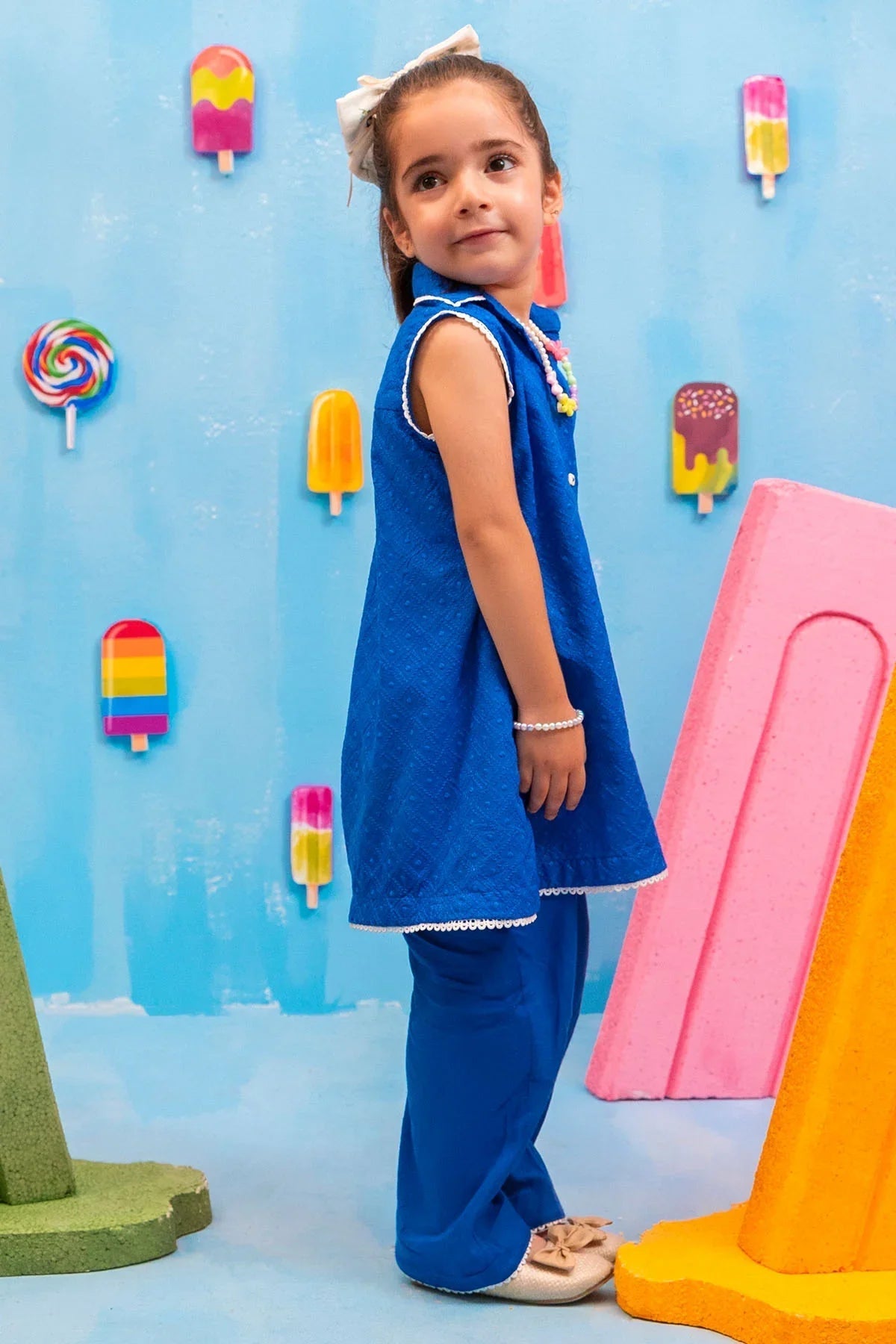 Top: Blue Chikankari Top With LacesBottom: Blue Cotton Trouser