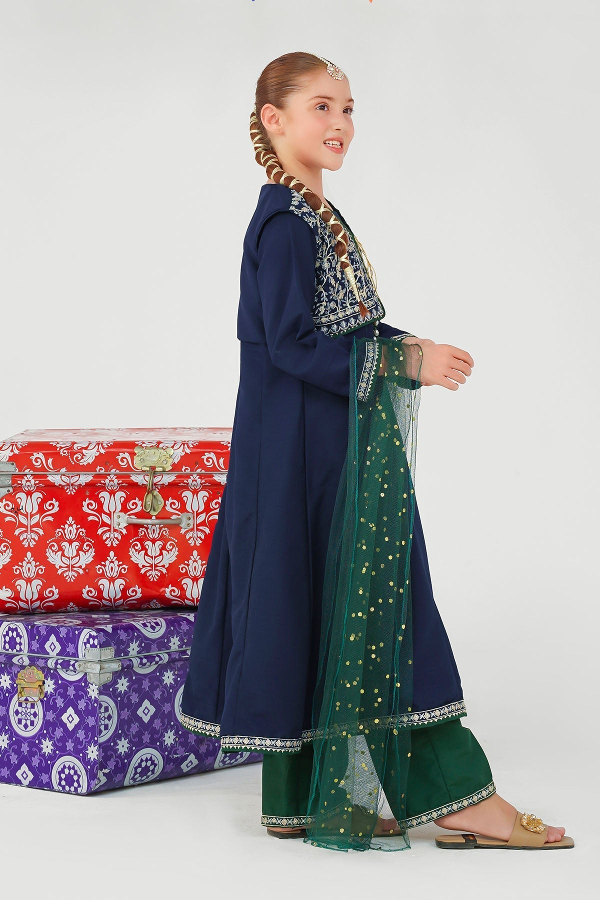 Top: Navy Blue Raw Silk Kurta & Koti With Embroidery and Tassels