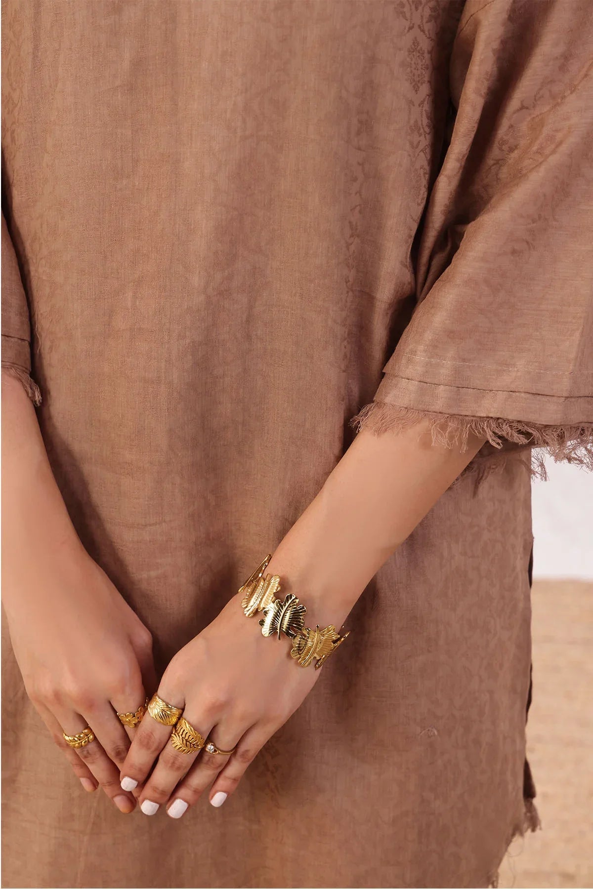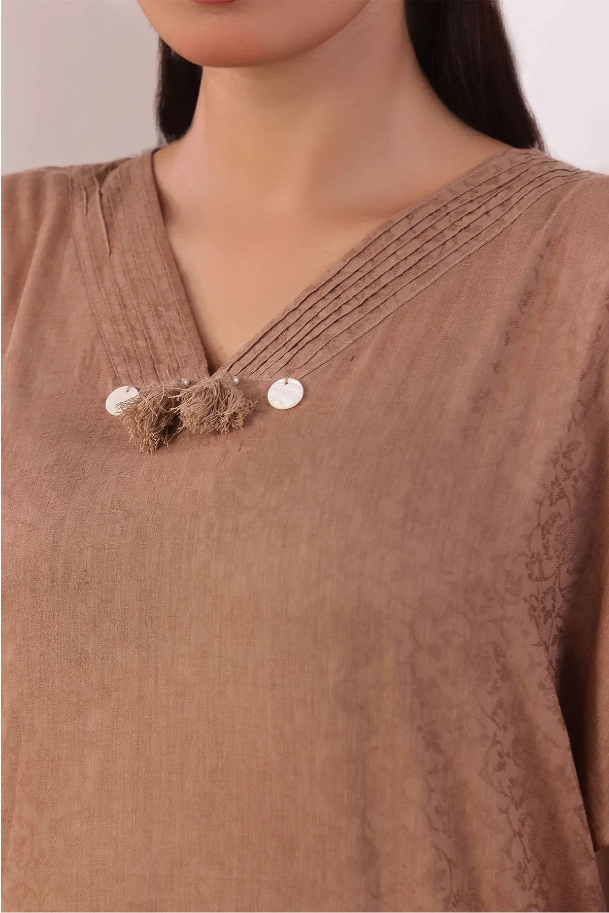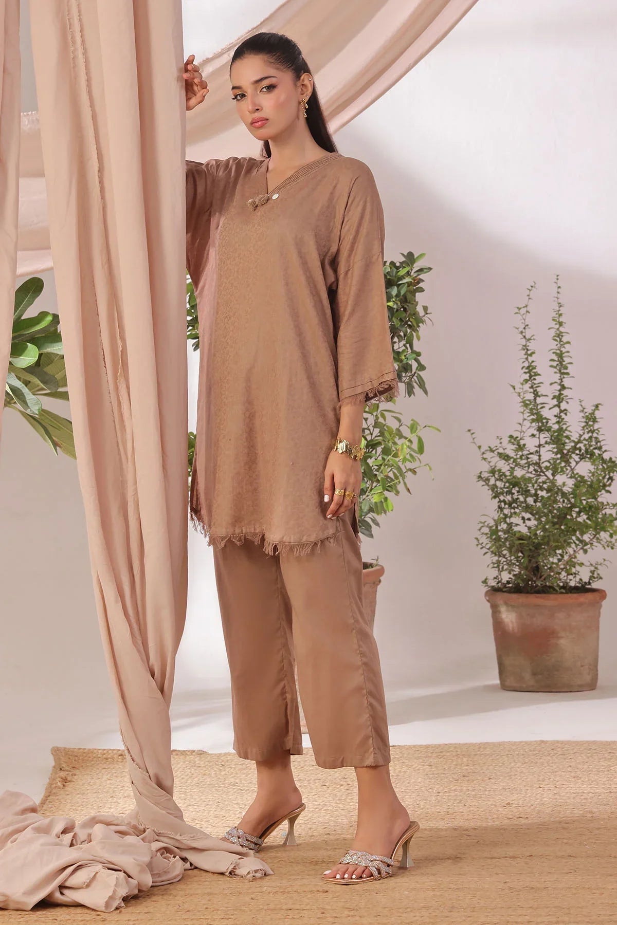Top:  Brown Cotton Jacquard Kurta Bottom: Brown Cotton Trouser