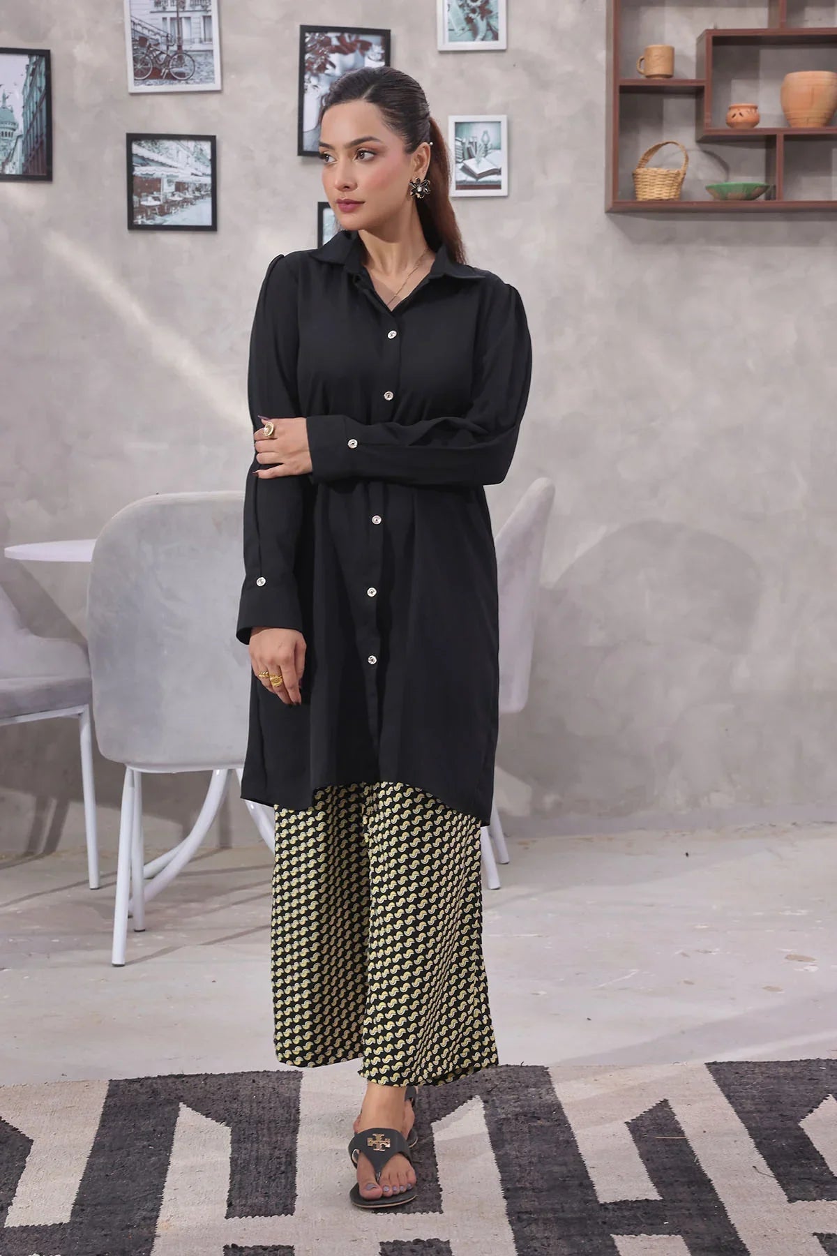 Top: Black Georgette TopBottom: Printed Georgette Trouser