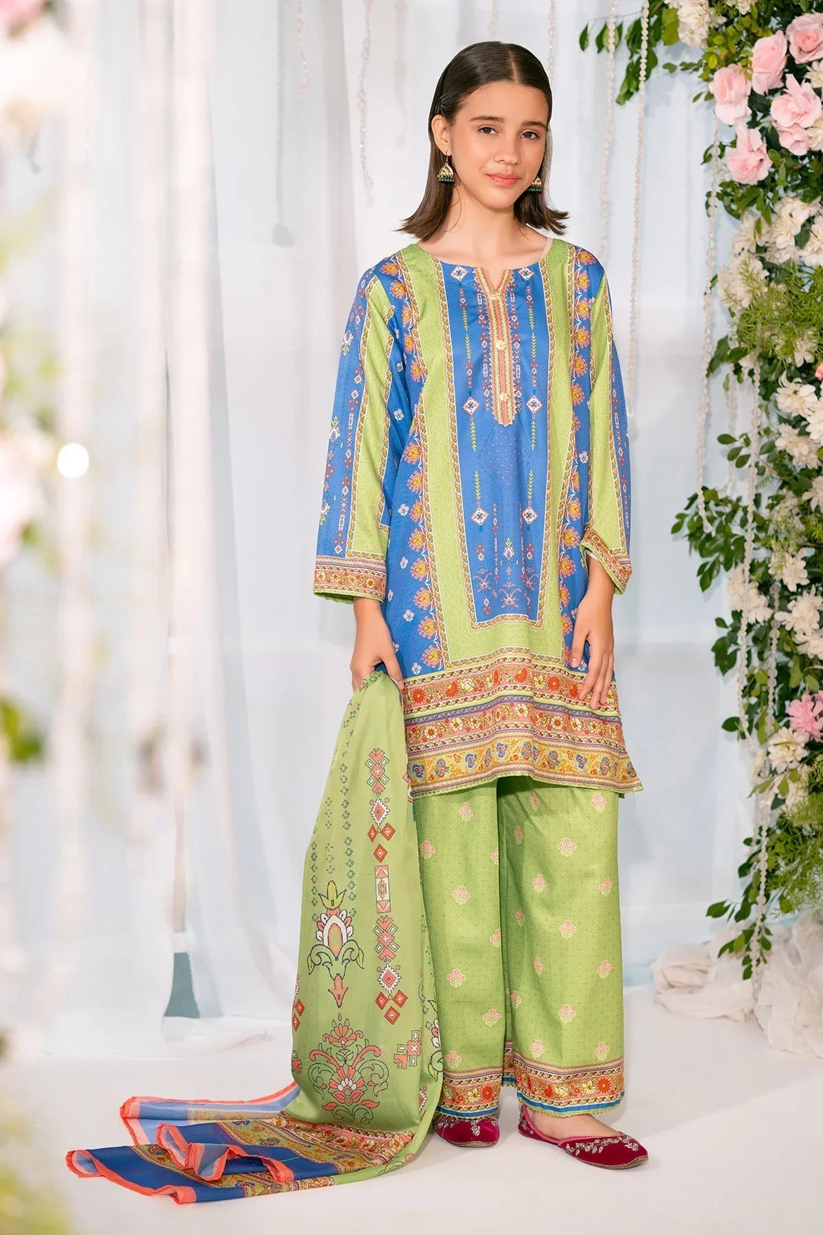 Top: Green & Blue Herringbone Digital Printed KurtaÂ