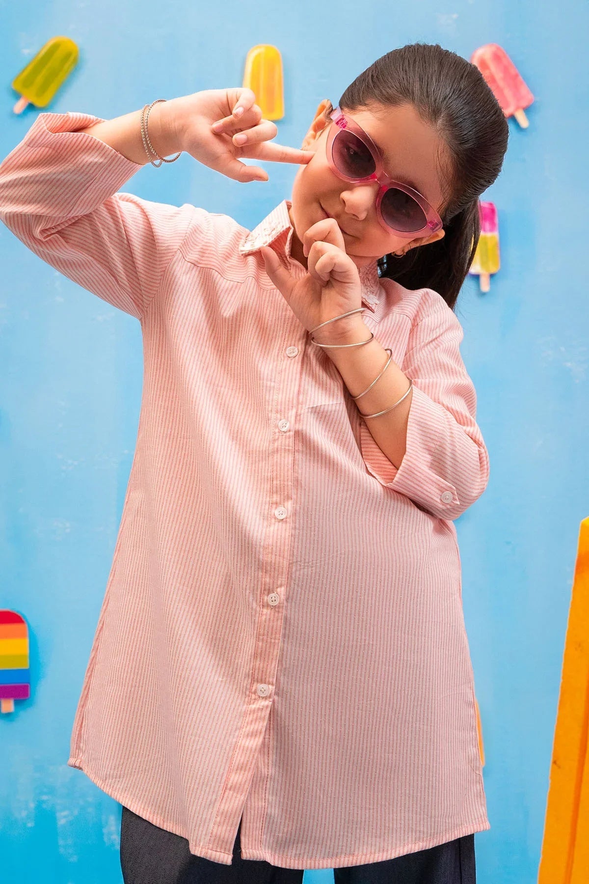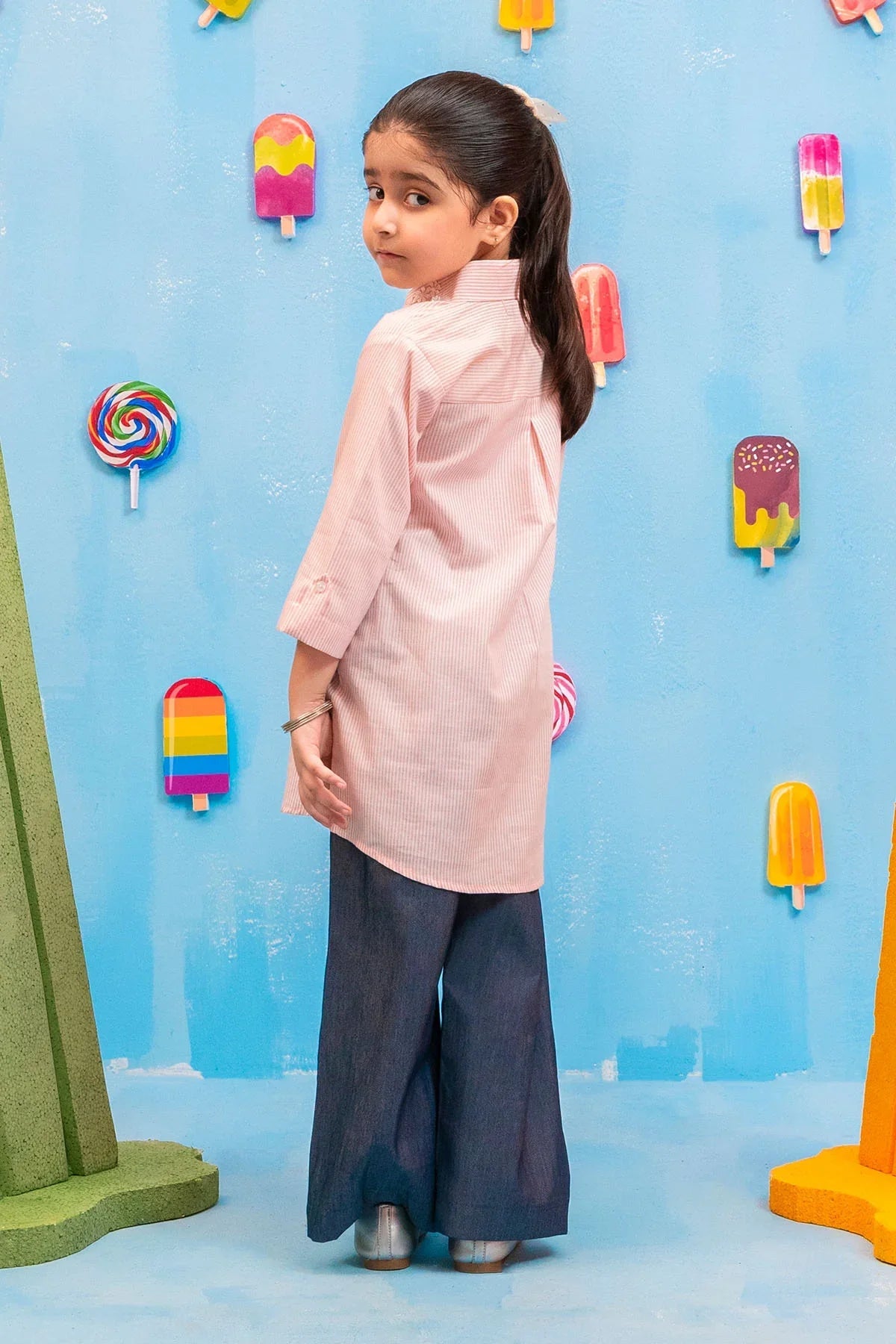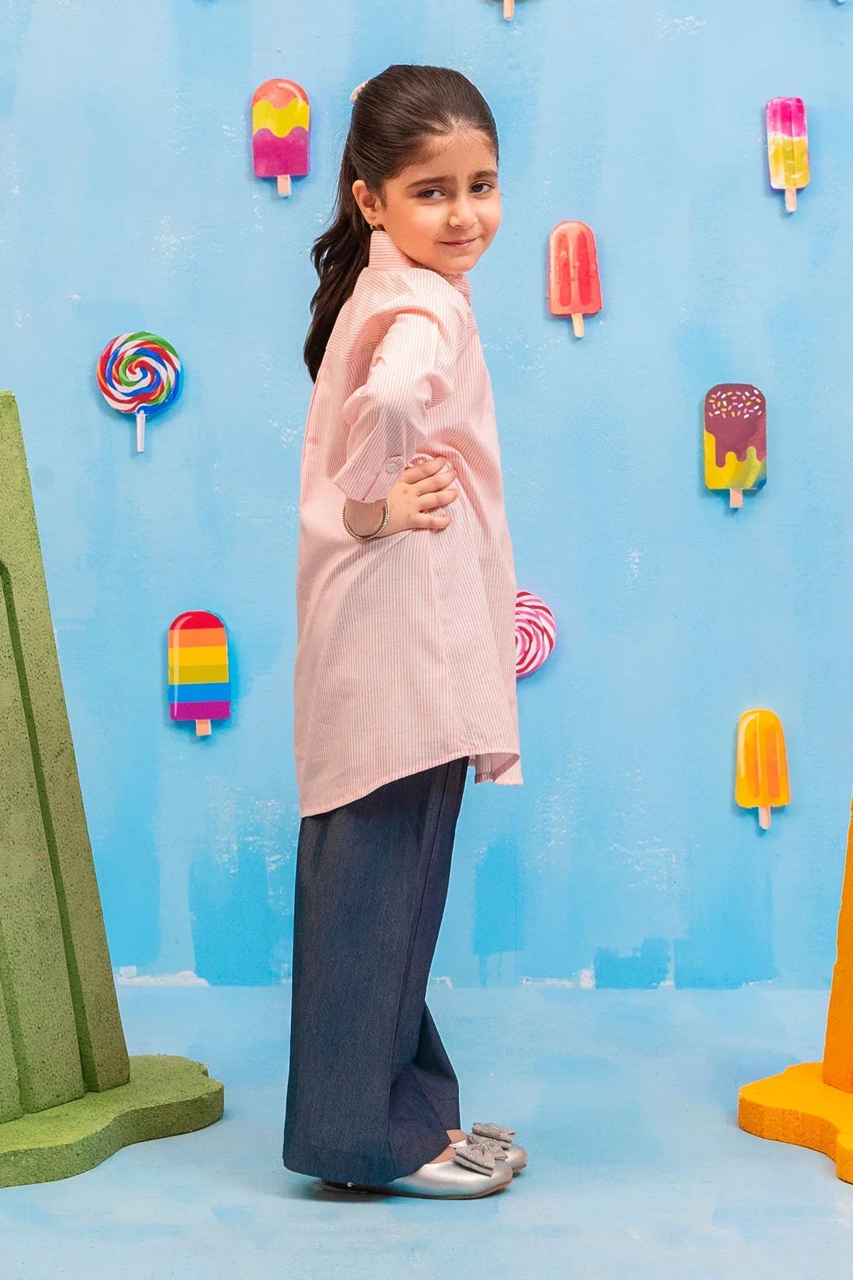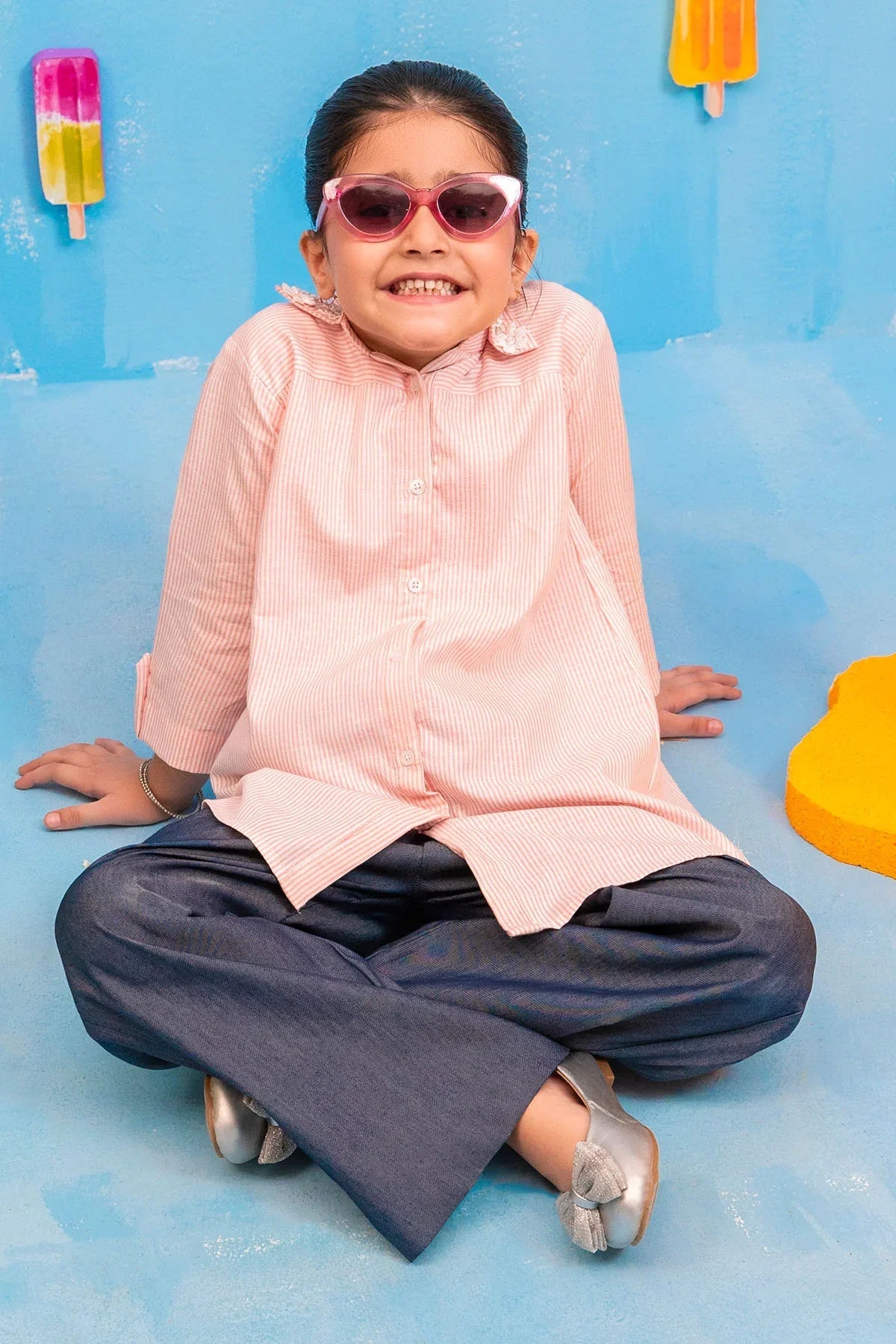 Top: Pink Pin Stripes Cotton Top Bottom: Dark Blue Denim Trouser