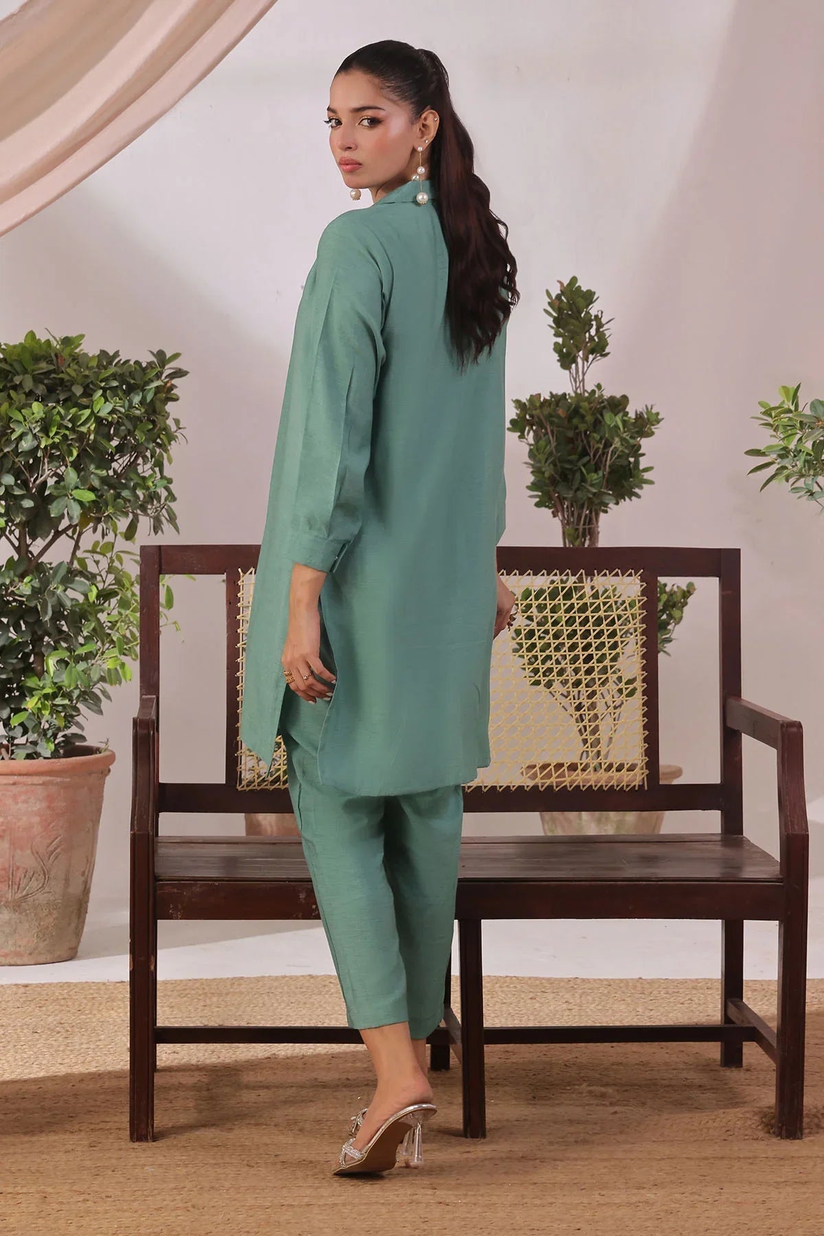 Top: Green Slub Cotton Kurta Bottom: Green Slub Cotton Trouser