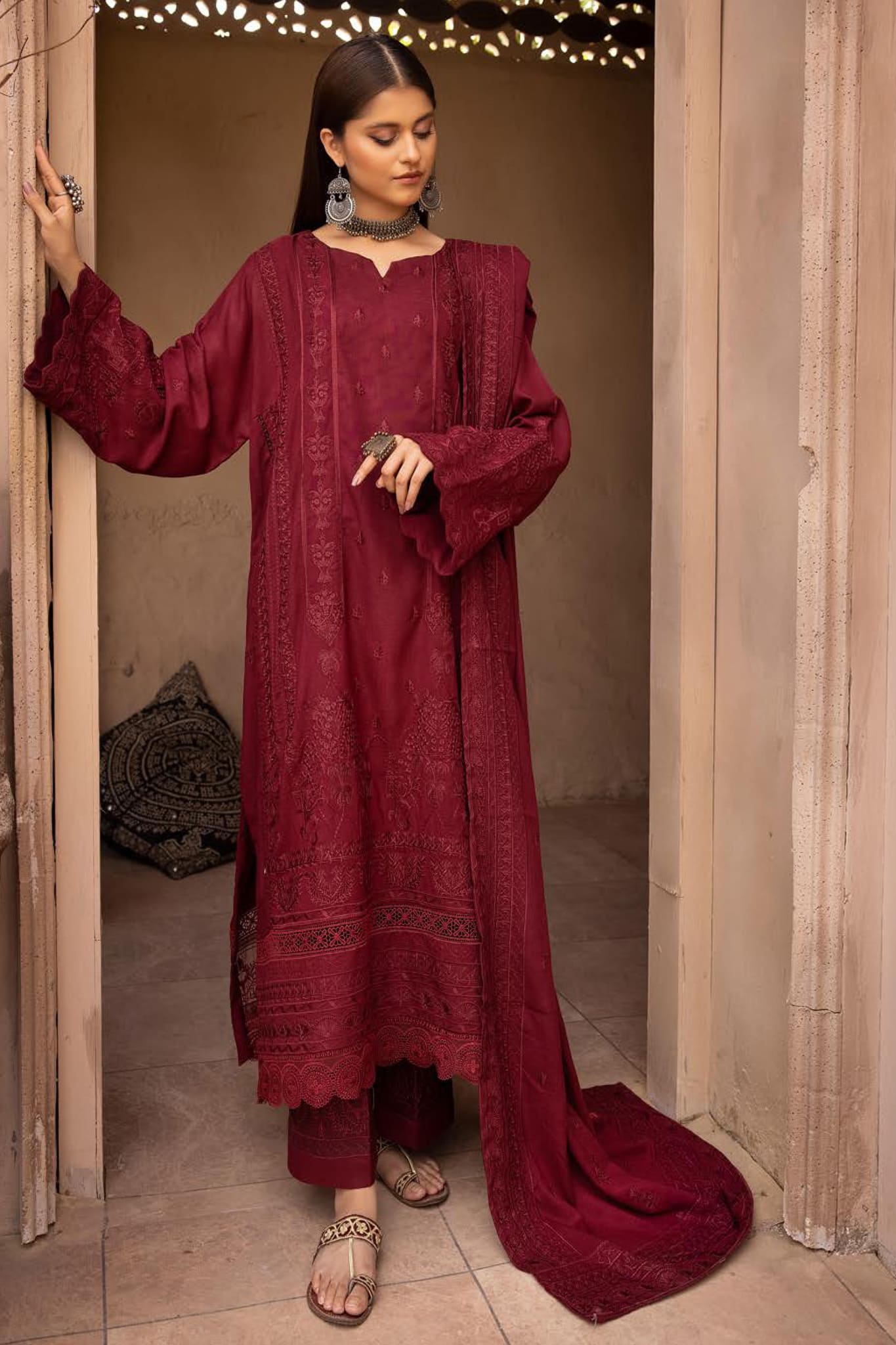 Embroidered Wool Shawl