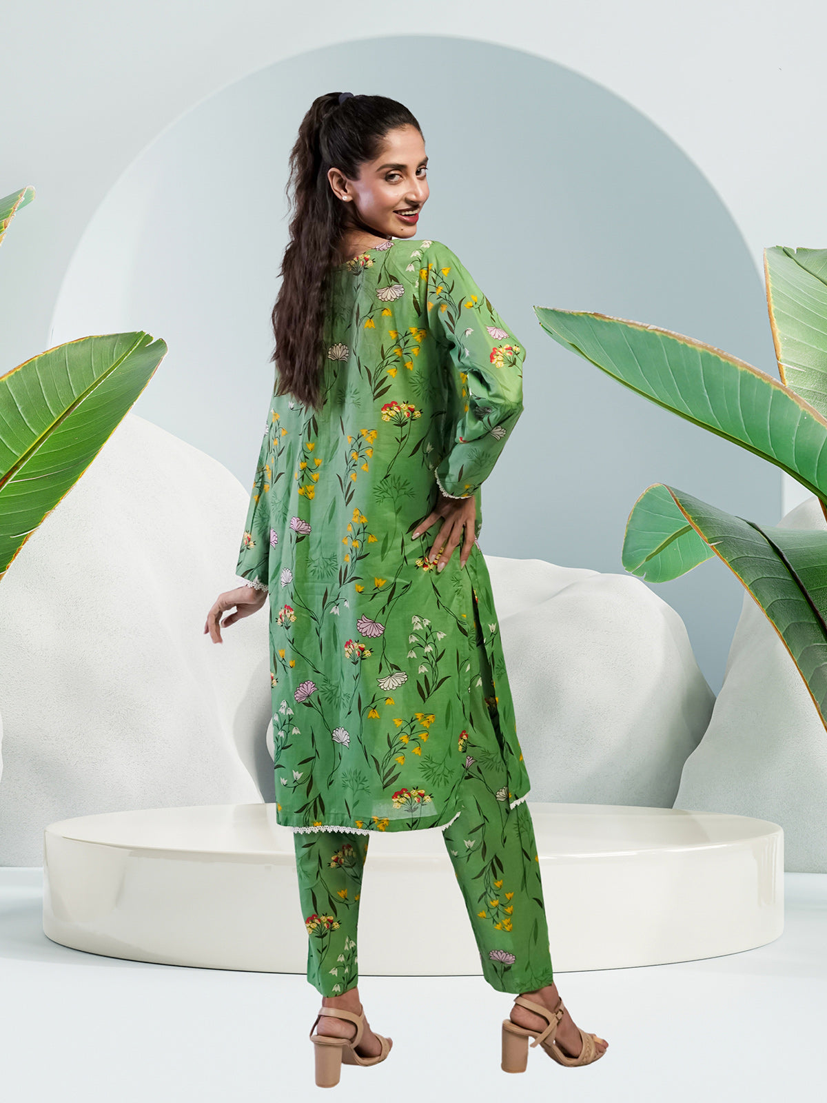 This elegant green dress features a charming floral print that combines style and comfort effortlessly. Made from high-quality cambric fabric, it offers a soft and breathable fit, making it perfect for warm weather and casual events. The floral pattern adds a touch of sophistication and individuality, making this dress suitable for a variety of occasions, from weddings to parties, or as a chic everyday option. Available in multiple sizes, this dress ensures a perfect fit for every customer.