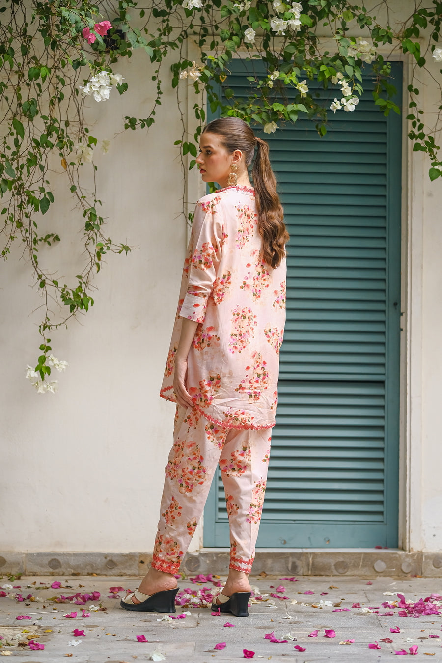 Embrace the delicate beauty of summer blooms with this pink cotton lawn outfit. The all-over print features a mix of pink, red, and purple flowers, creating a soft and feminine look. The breathable fabric keeps you cool and comfortable.