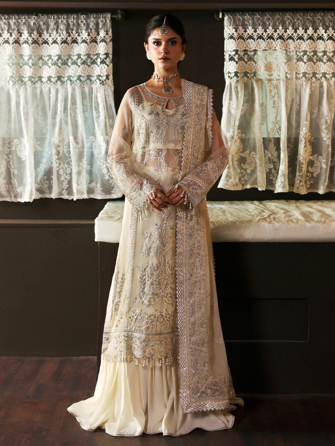 Shirt Front Embroidered Organza 1 Piece Back Embroidered Organza 1 Piece Sleeves Embroidered Organza 0.60 Yards Organza Embroidered Border for...