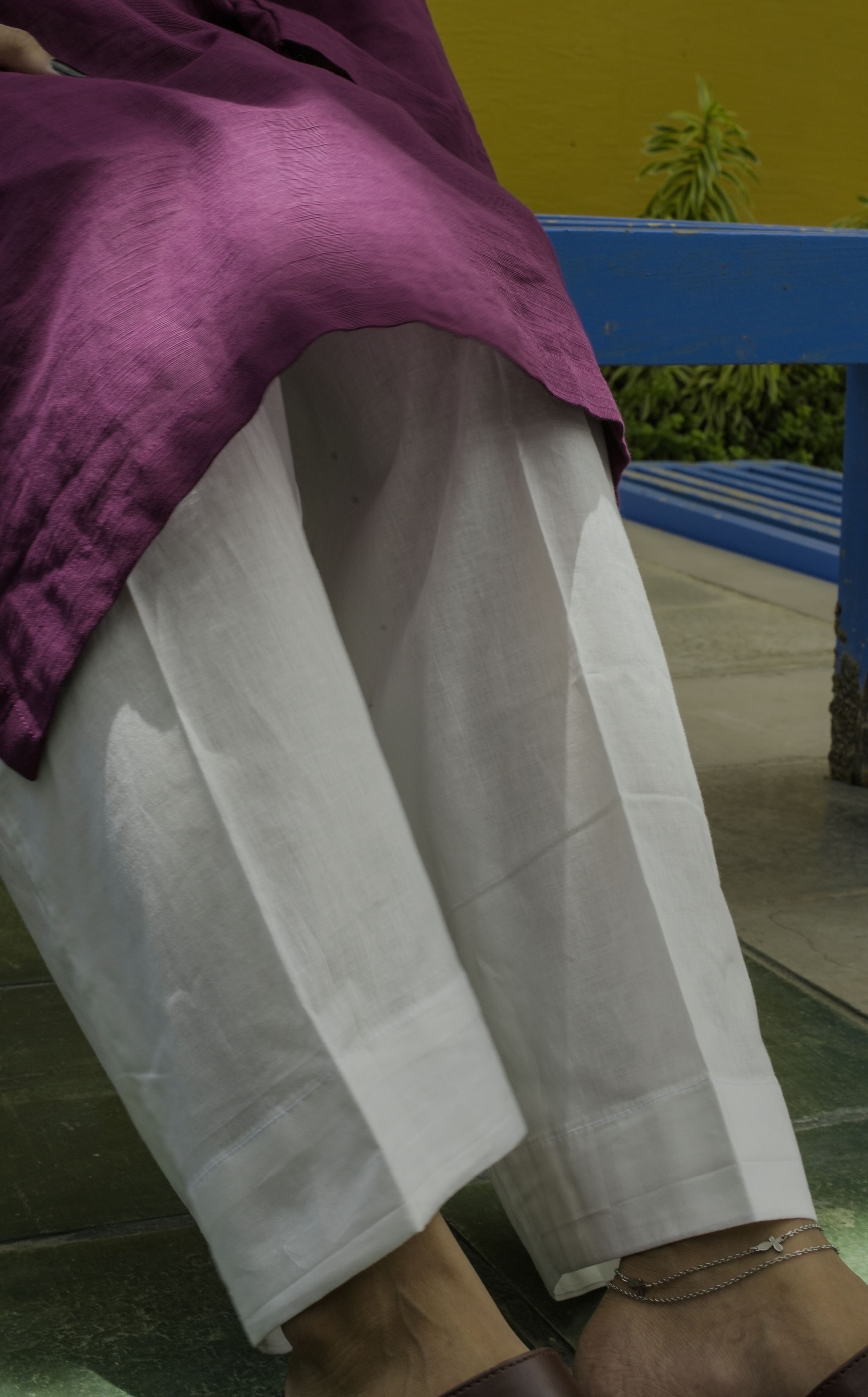 Loose-fit cambric trousers with a pocket on one side