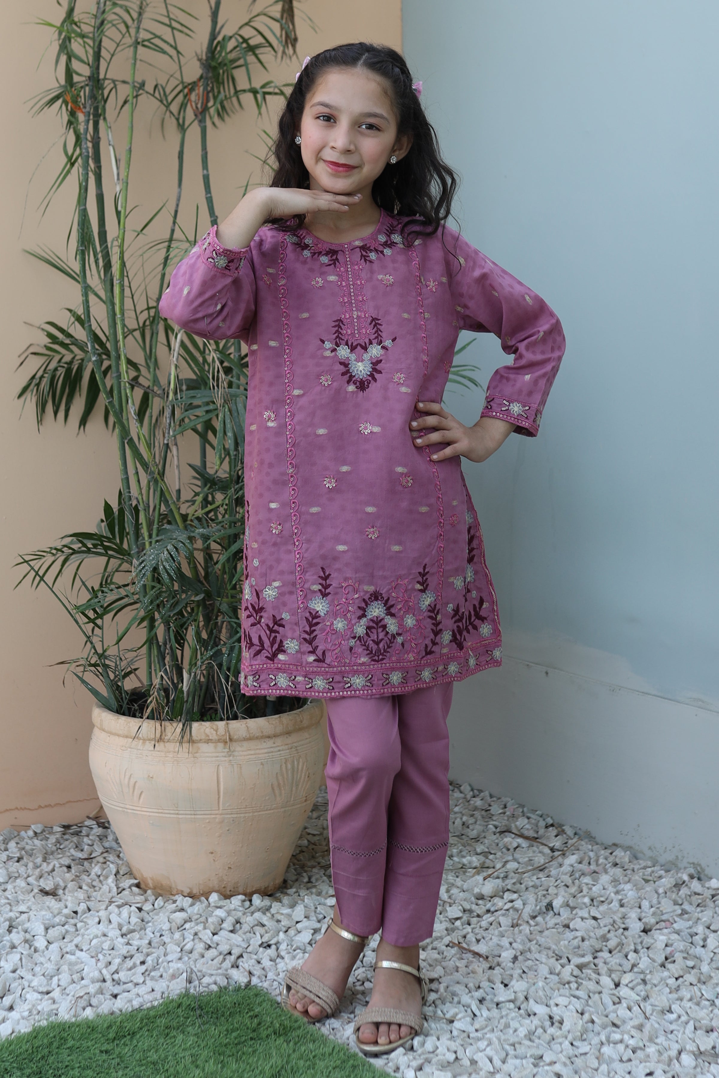 Elevate your child's fashion game with Khanak's Stitched Cotton Frock and Trouser set. Crafted specifically for kids, this sophisticated ensemble showcases high-quality cotton jacquard fabric, offering a perfect blend of style and comfort. Ideal for both casual and semi-formal events, it’s a must-have addition to their wardrobe. This product is designed for all seasons.