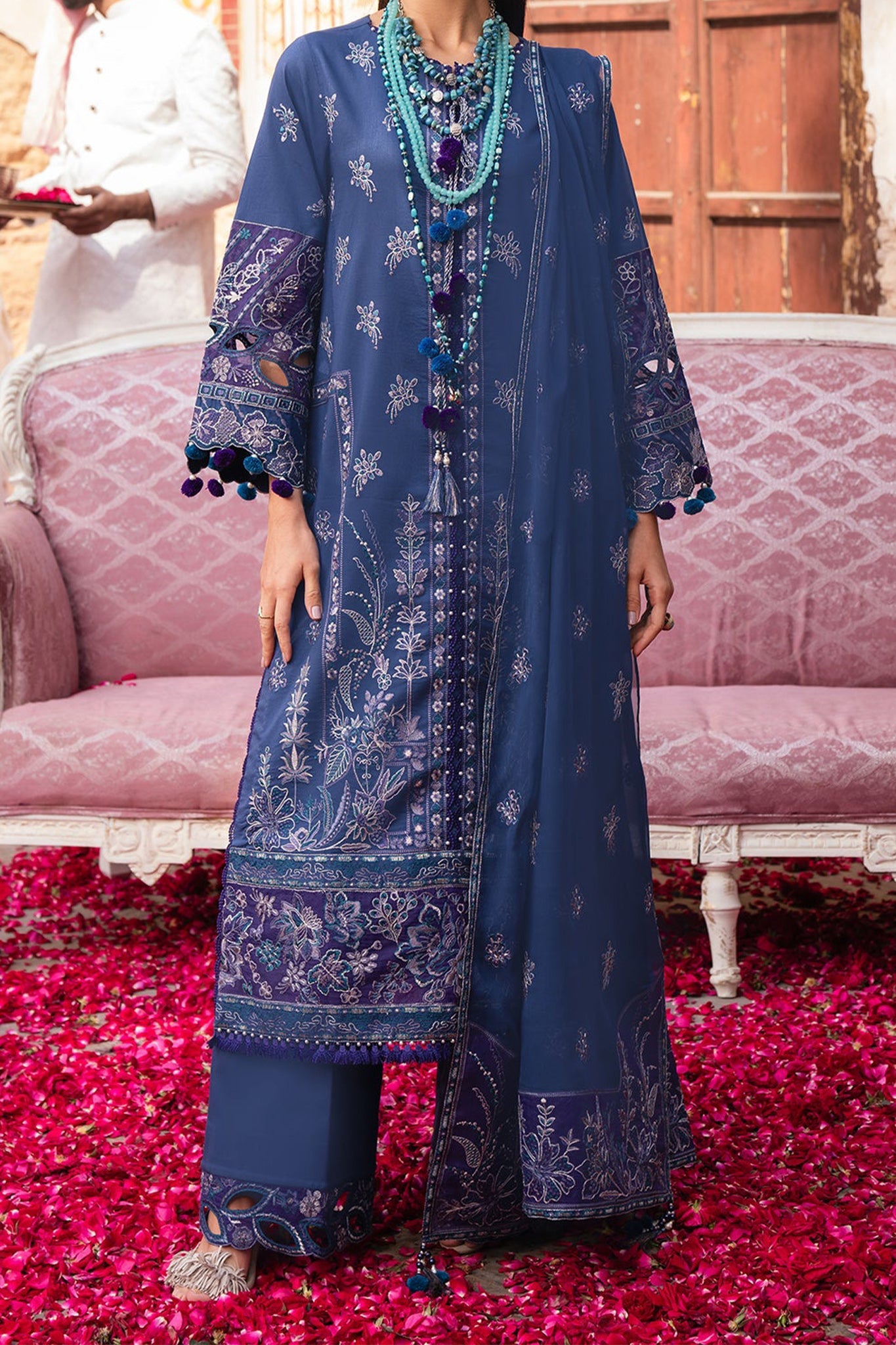 Embroidered Front (Lawn) Dyed Back (Lawn) Embroidered Sleeves (Lawn) Embroidered Front & Back Daman Patti 2 (Organza) Embroidered Sleeves Patti...
