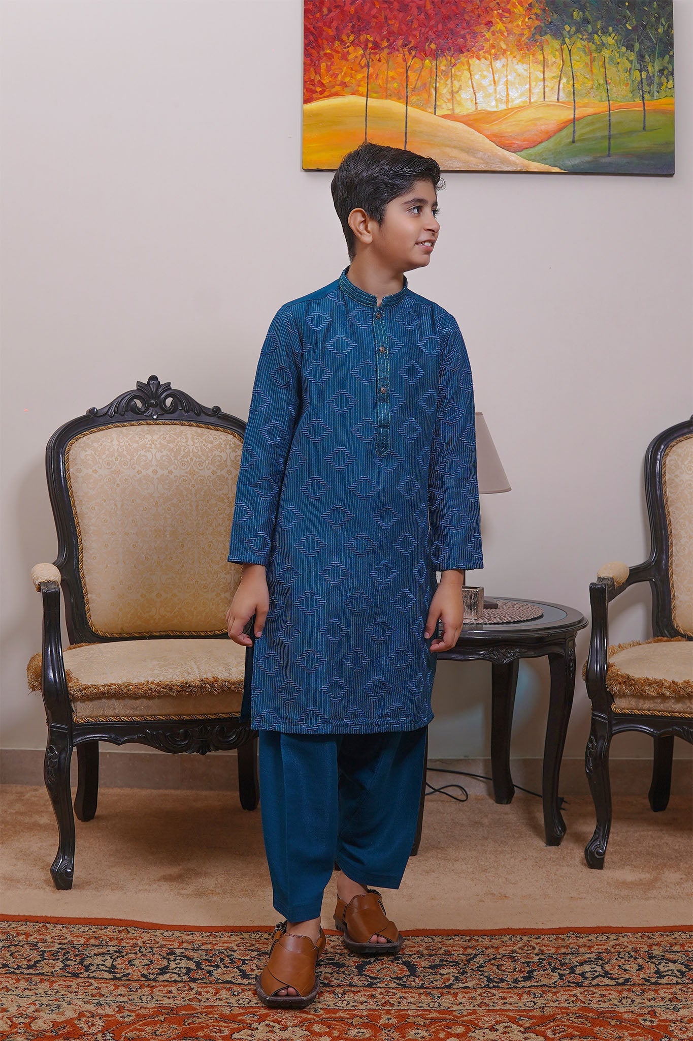 Formal Style Kameez Shalwar Suit for Kids , Easy Iron , Formal Silk Base Fabric with Embriodred Front and Sleaves along with Hand Embriodrey on Collar and Front Placket , Special For Festive Use