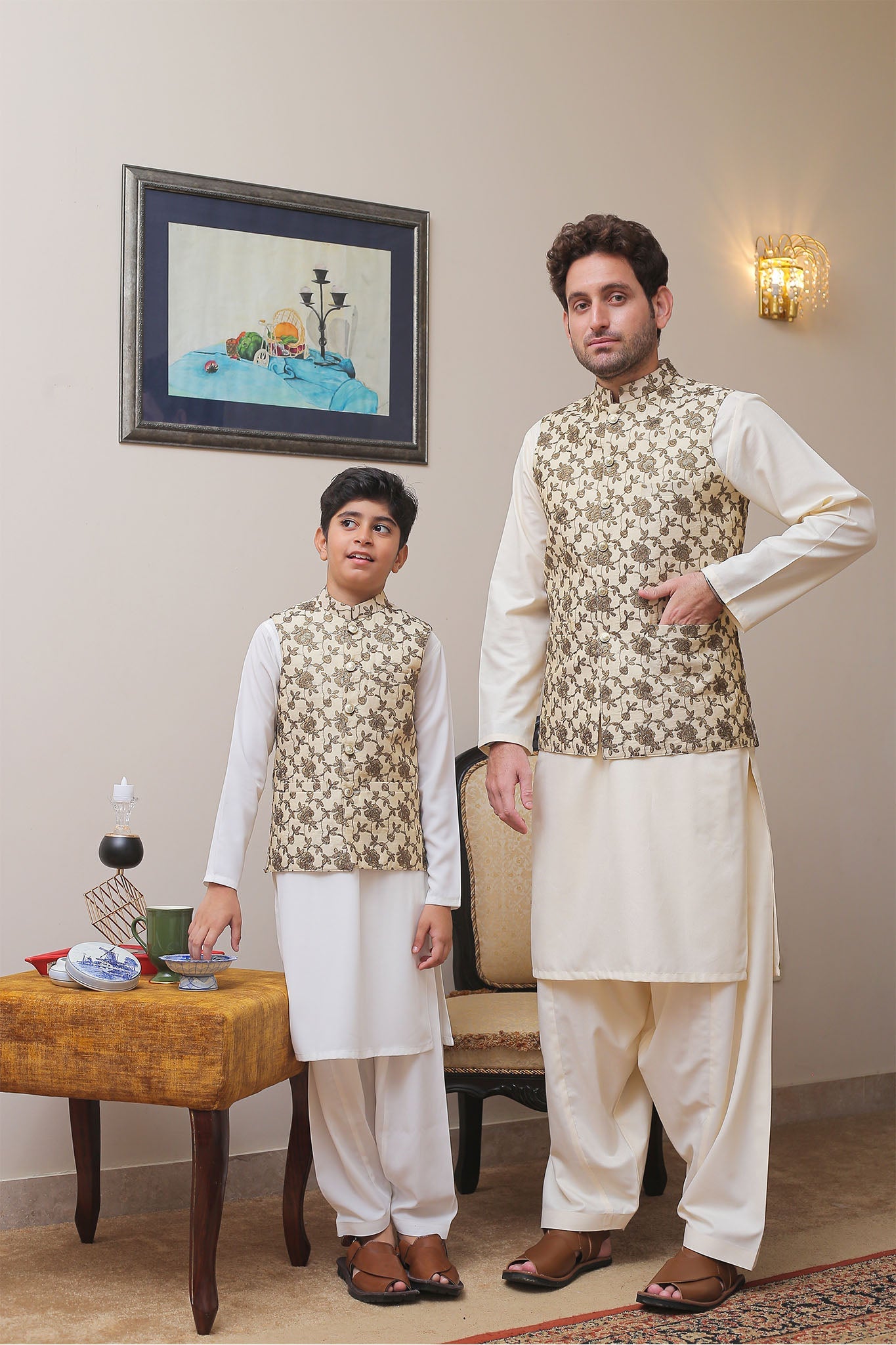 Formal Style Waist Coat for Kids , Cotton Silk Fabric , With Rich Embriodrey Design in Zari Work and Sequnce in Matt Brown Colour , Special for Festive And Wedding Wear