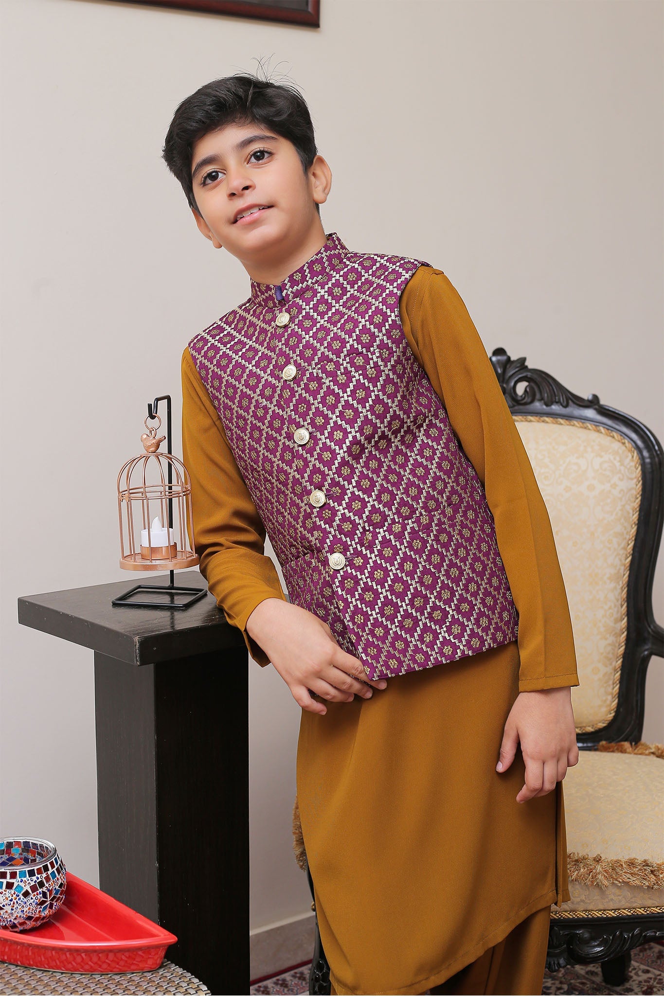 Formal Style Waist Coat for Kids , Raw Silk Fabric , With Rich Embriodrey Design in Zari Work , Special for Festive And Wedding Wear