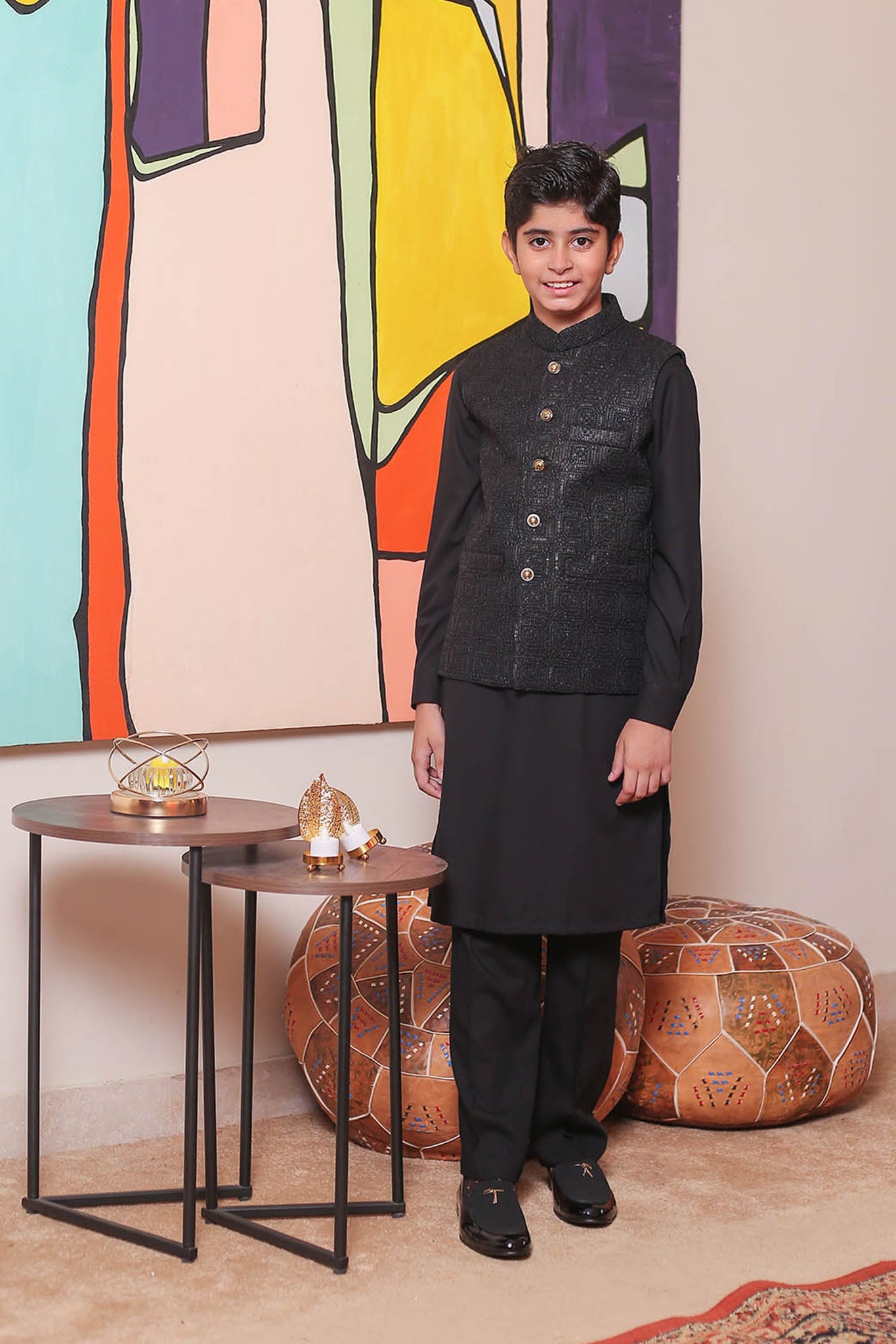 Formal Style Waist Coat for Kids , Elegently Designed Raw Silk Fabric in Black colour with Rich Matching Colour Embriodrey , Special for Festive And Wedding Wear