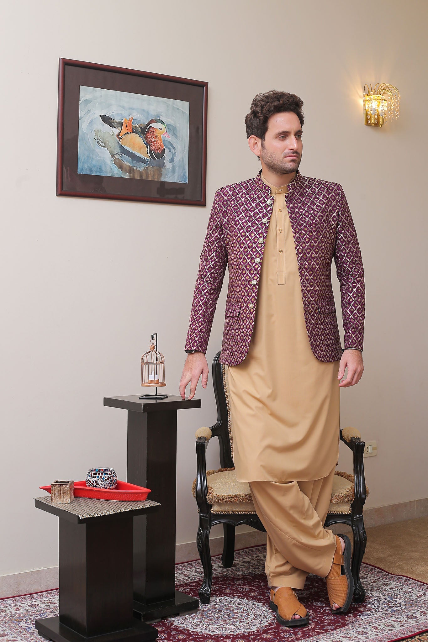 Formal Style Prince Coat for Men , Raw Silk Fabric , With Rich Embriodrey Design in Zari Work , Special for Festive And Wedding Wear