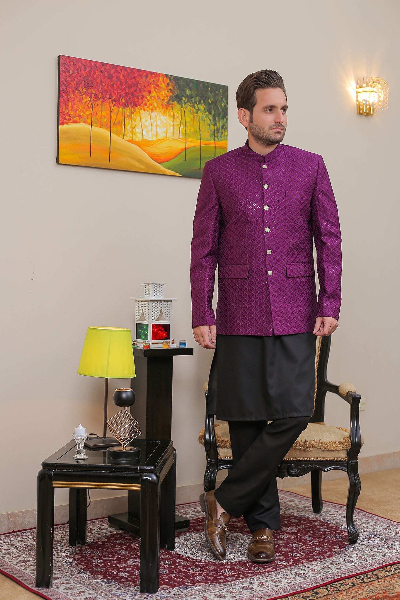 Formal Style Prince Coat for Men , Raw Silk Fabric , With Rich Embriodrey Design in Thread Work Along With Little Sequnce Work in Matt Black Colour , Special for Festive And Wedding Wear